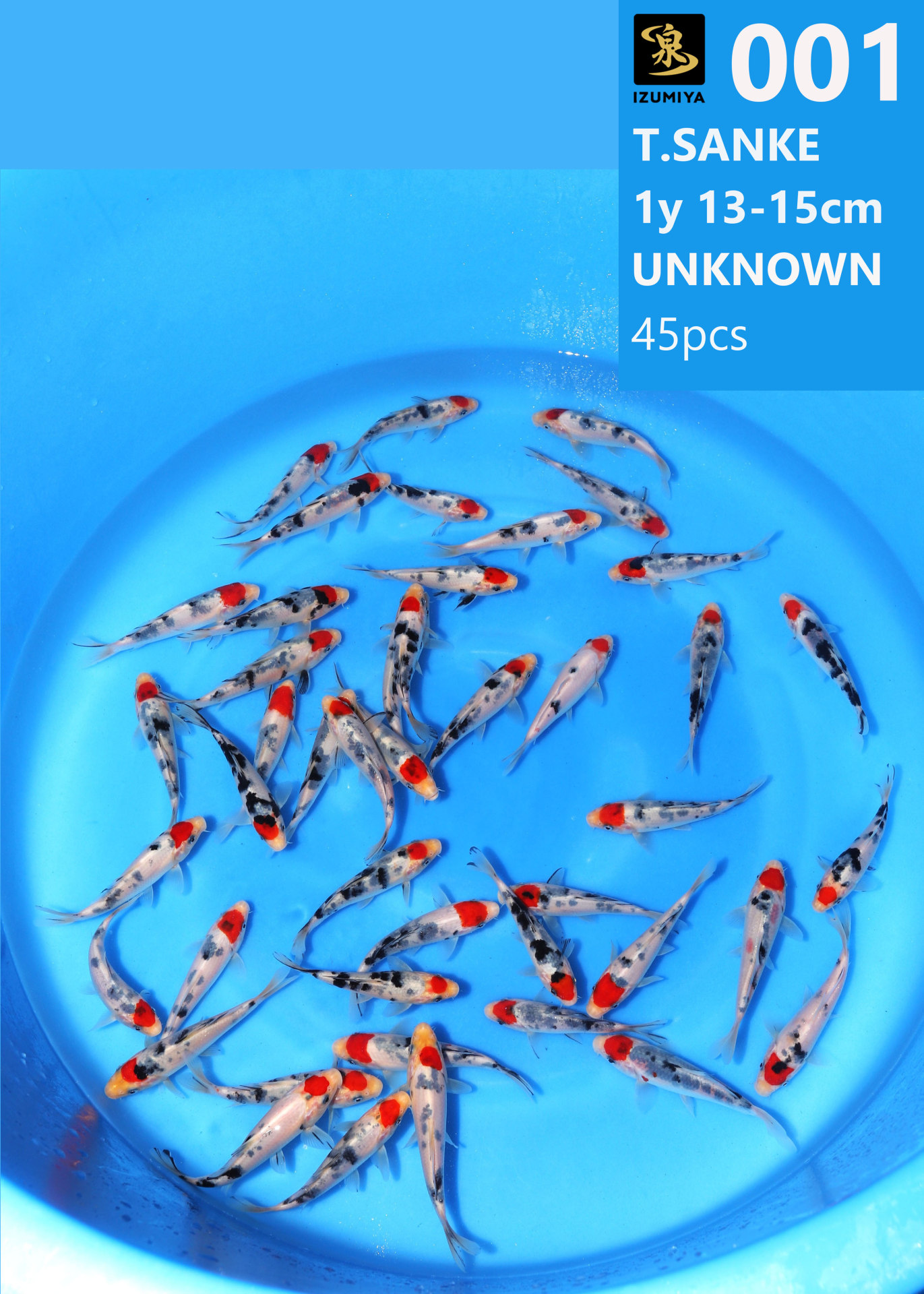Izumiya koi farm 1y 13-15cm Unknown Tancho Sanshoku 45pcs