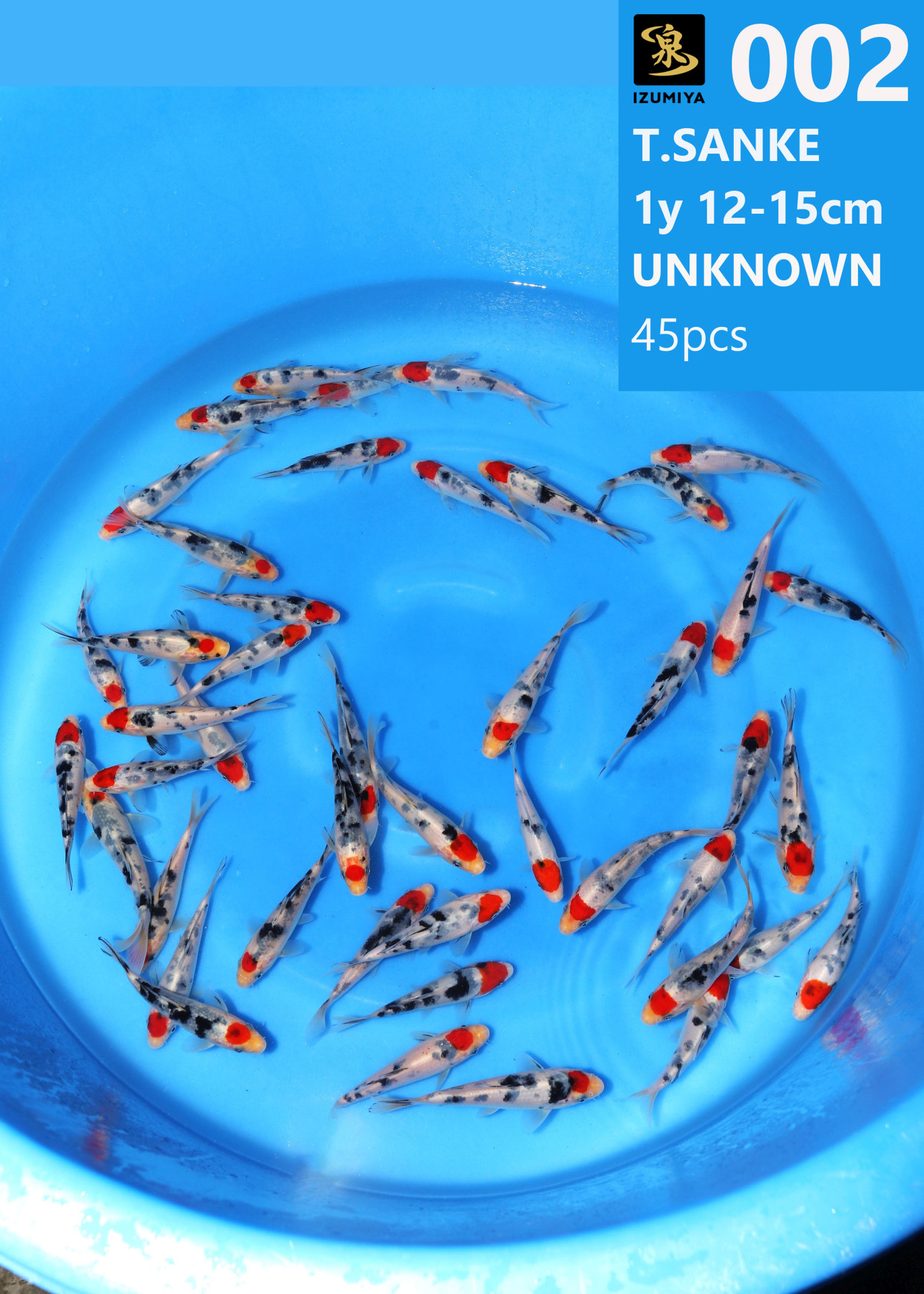 Izumiya koi farm 1y 12-15cm Unknown Tancho Sanshoku 45pcs