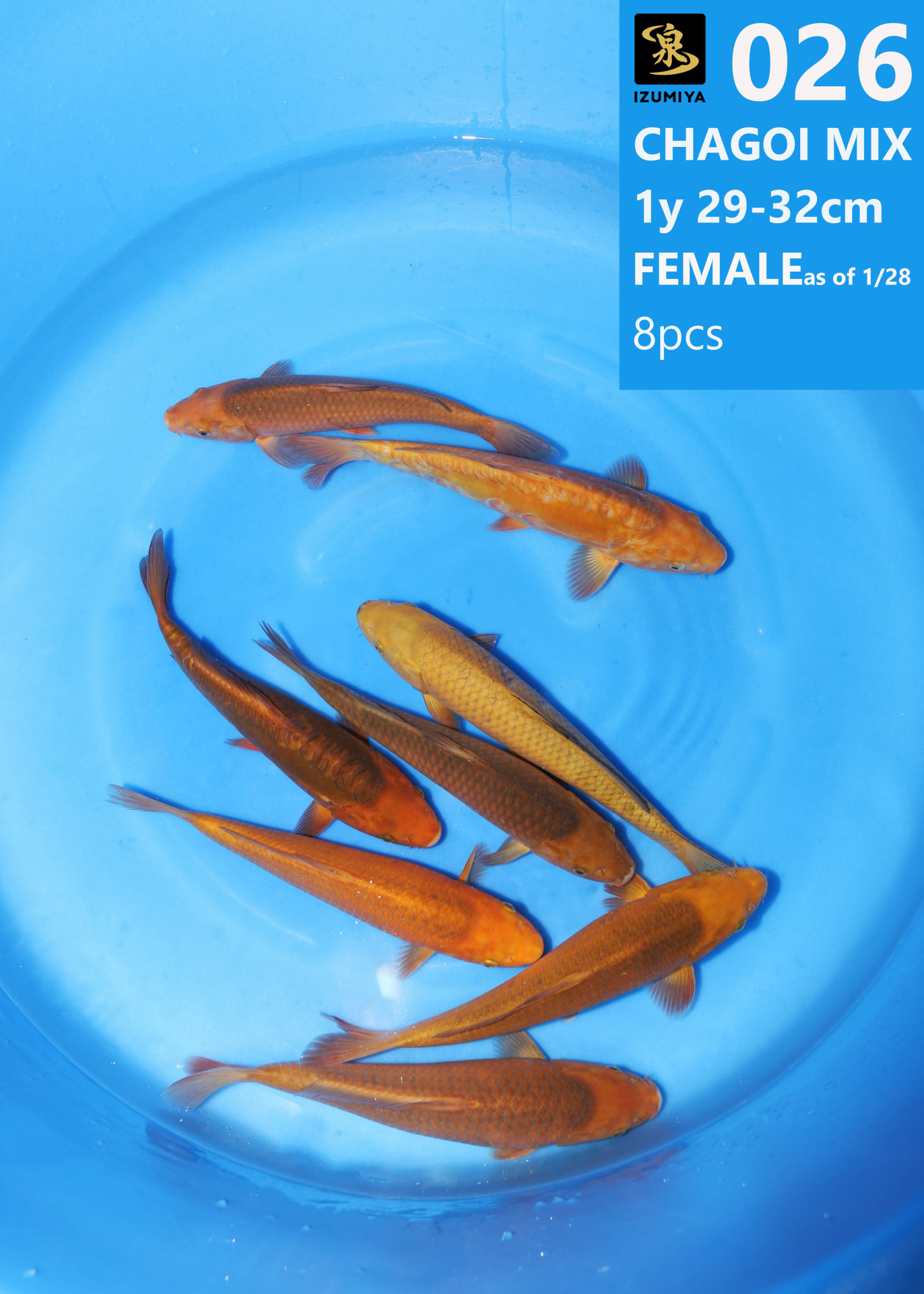Izumiya koi farm 1y 29-32cm Female Chagoi 8pcs