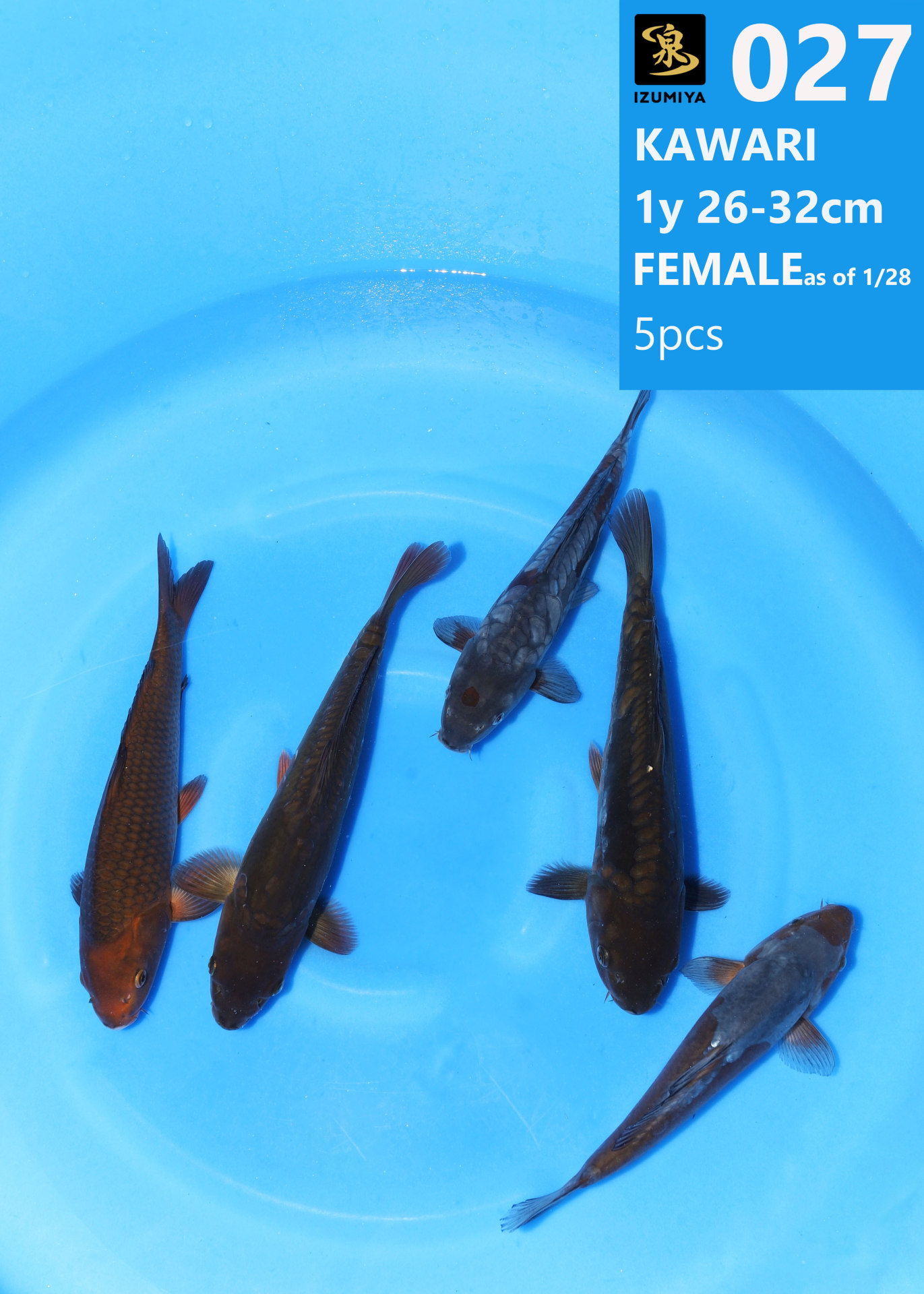 Izumiya koi farm 1y 26-32cm Female Kawari 5pcs