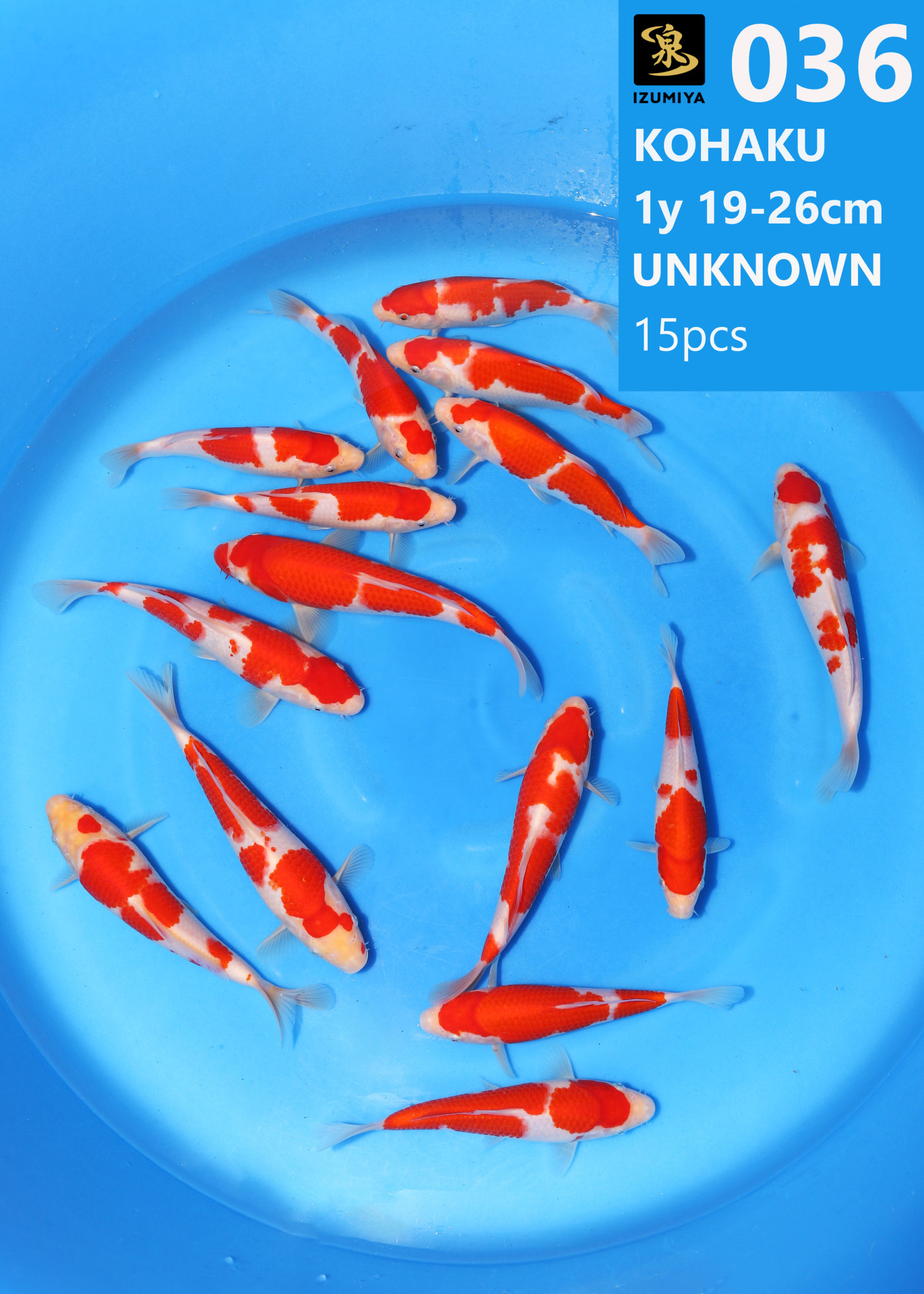 Izumiya koi farm 1y 19-26cm Unknown Kohaku 15pcs
