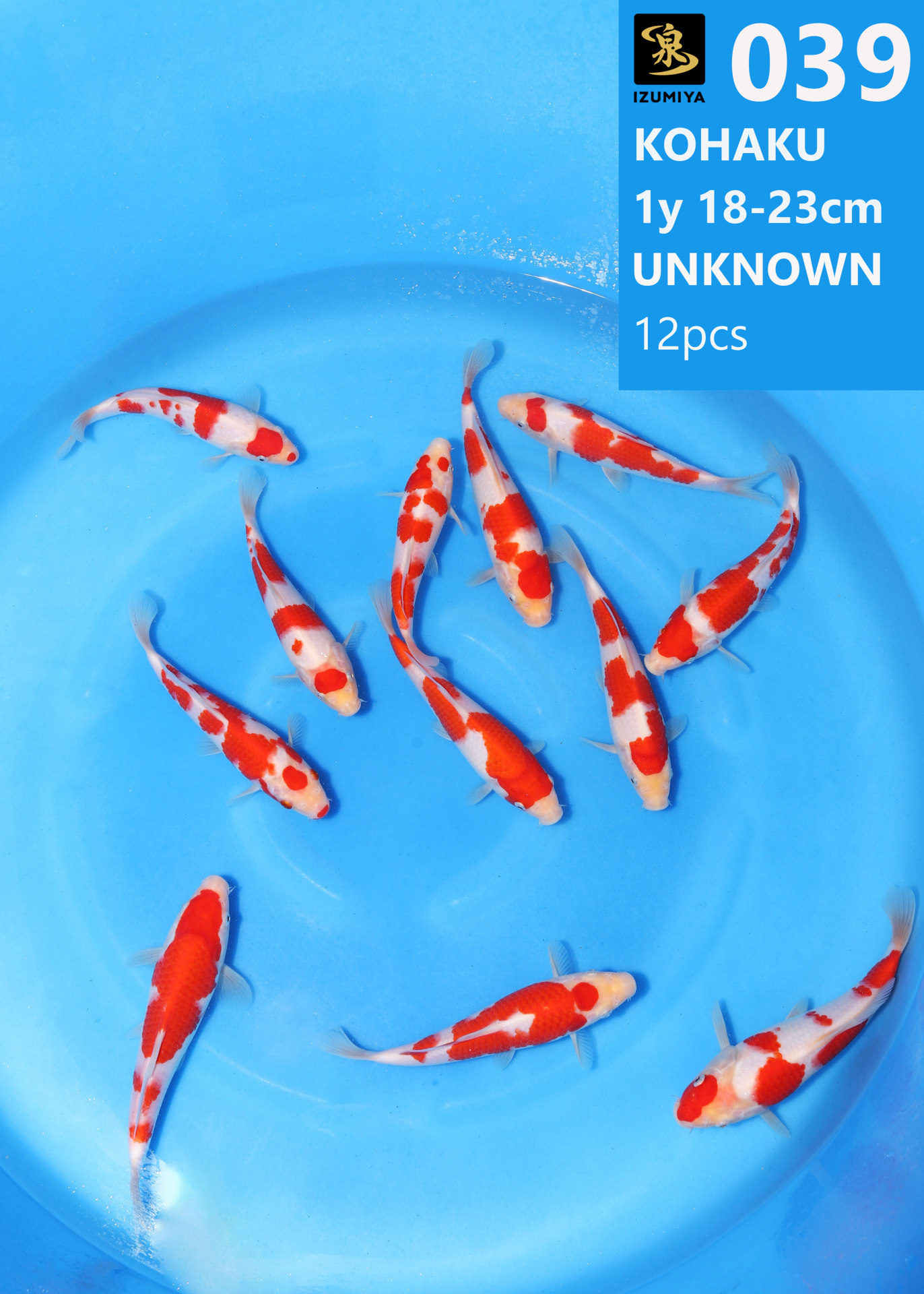 Izumiya koi farm 1y 18-23cm Unknown Kohaku 12pcs