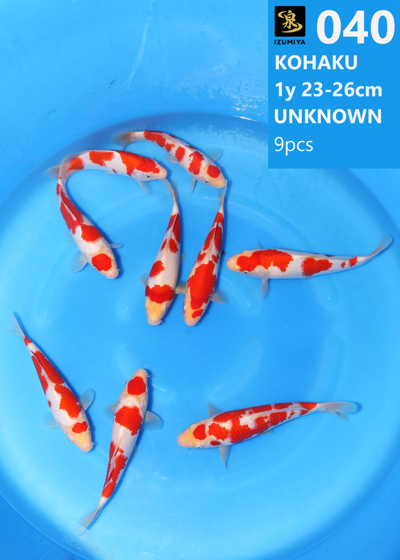 Izumiya koi farm 1y 23-26cm Unknown Kohaku 9pcs