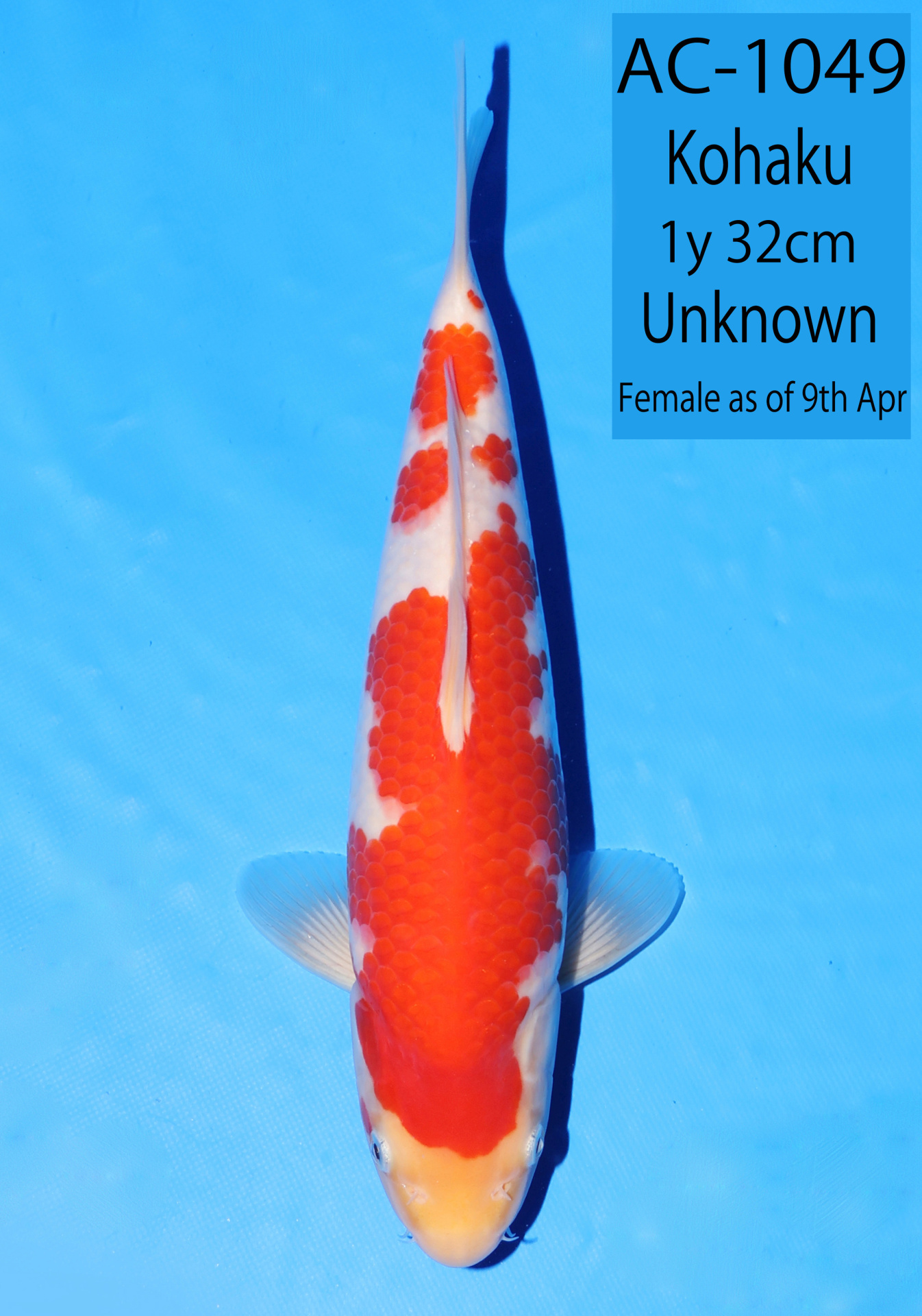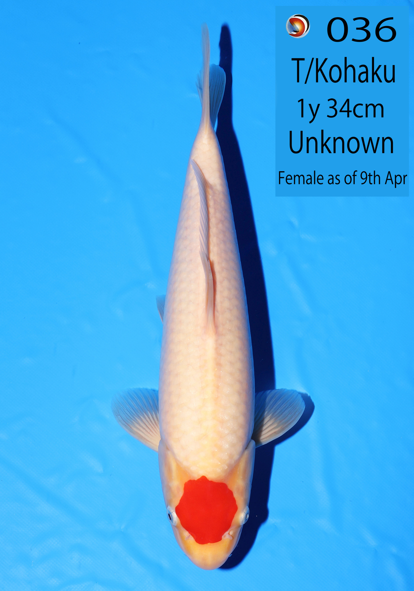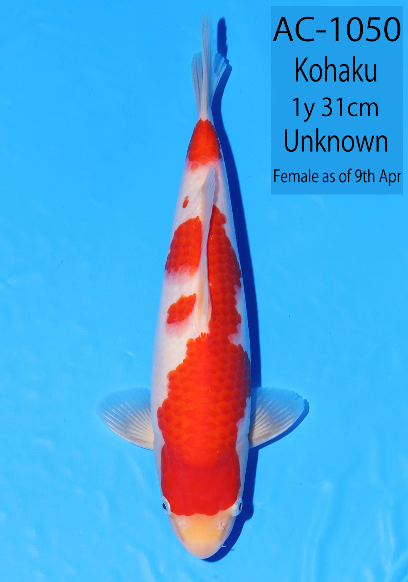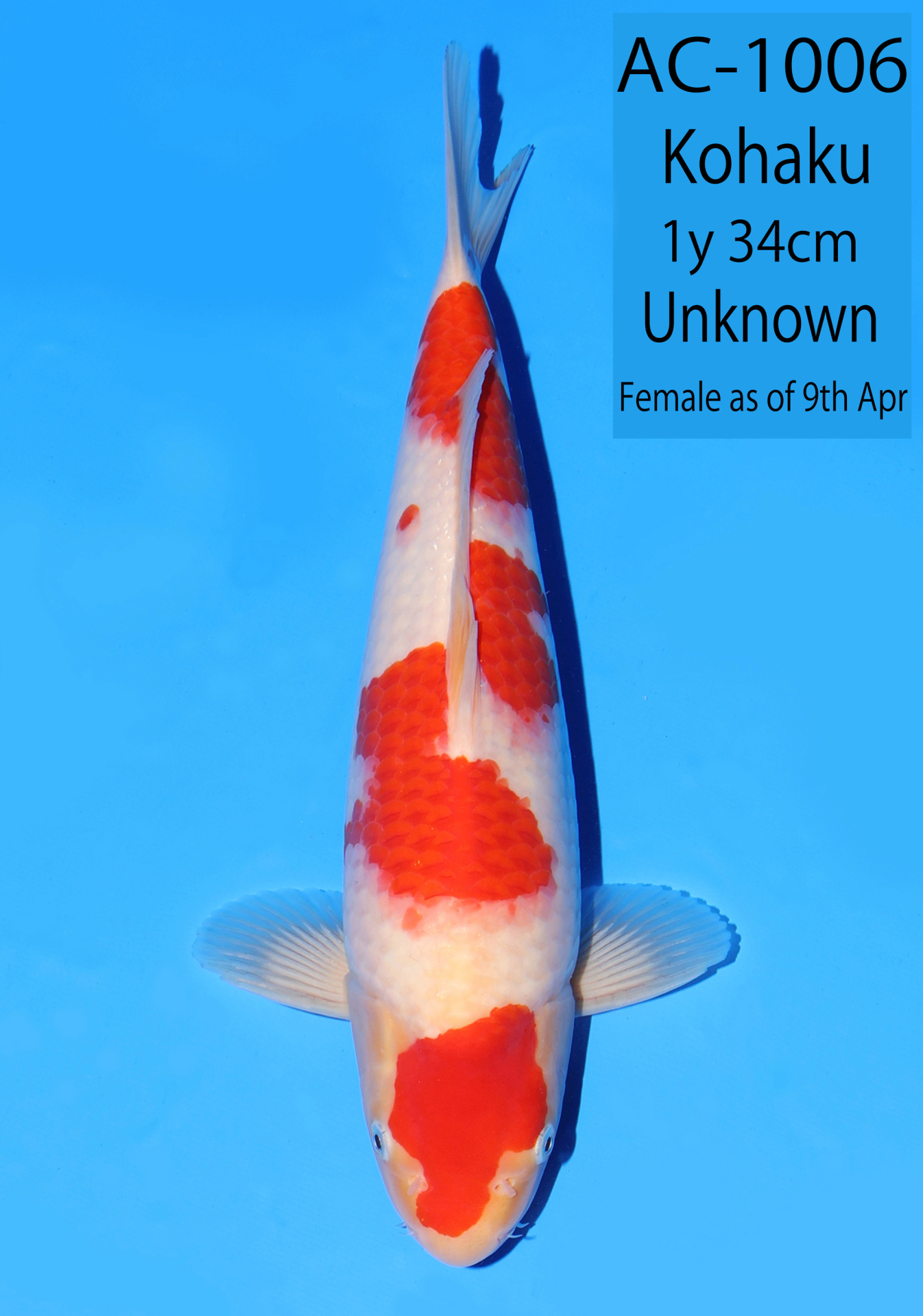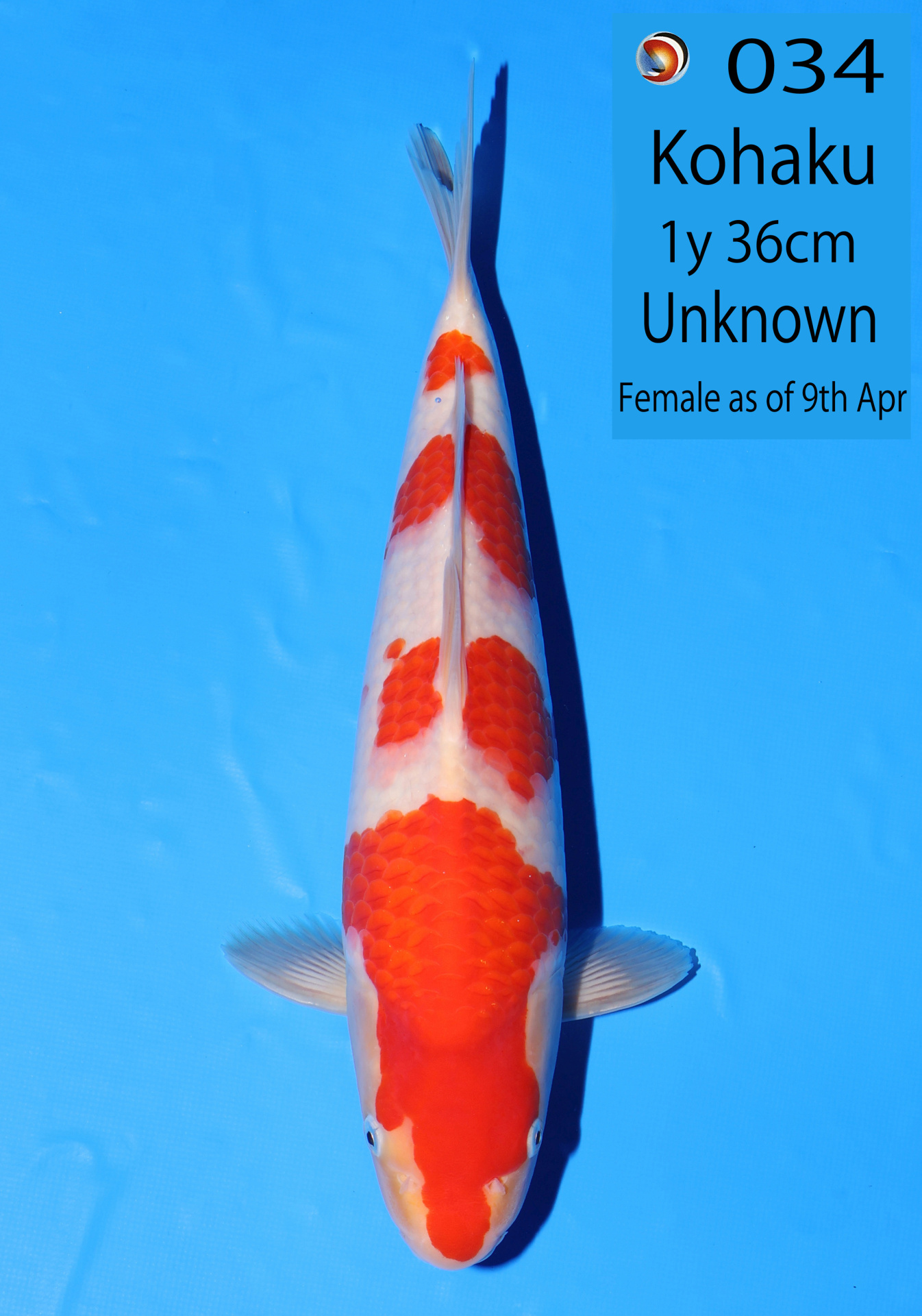 Ooya koi farm 1y 34cm Tancho Kohaku Bidding