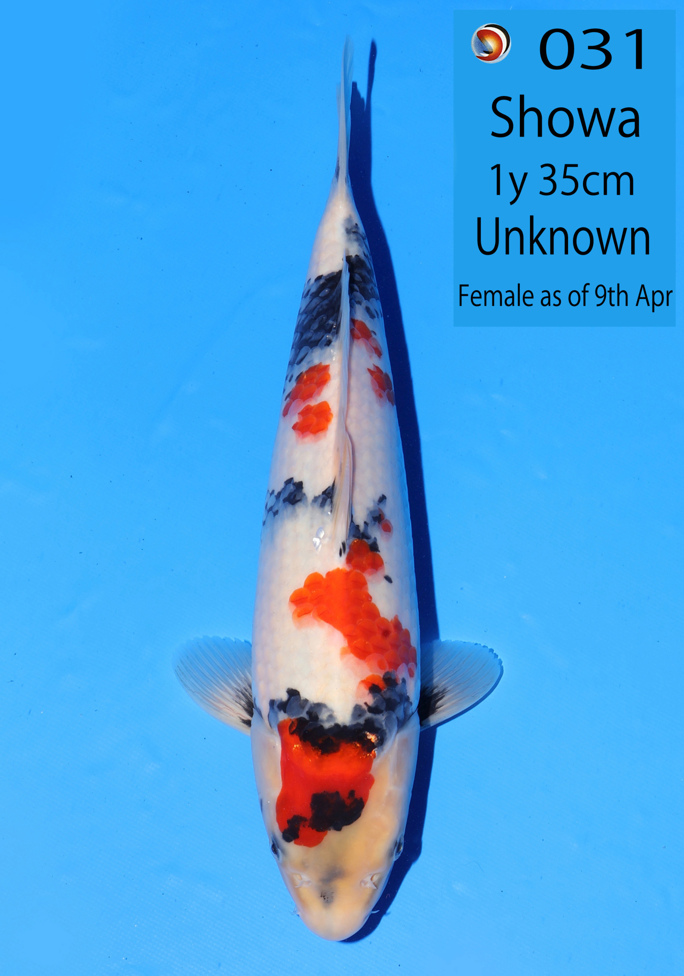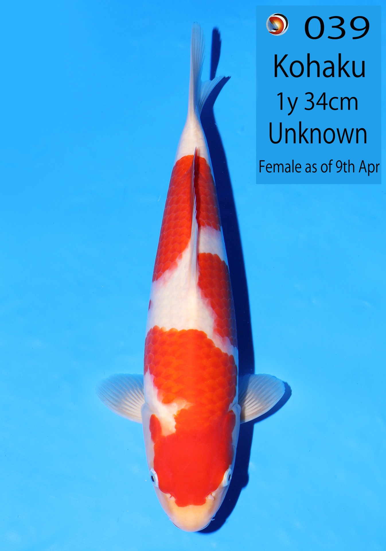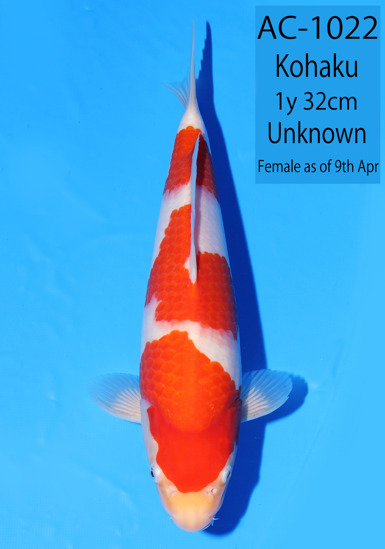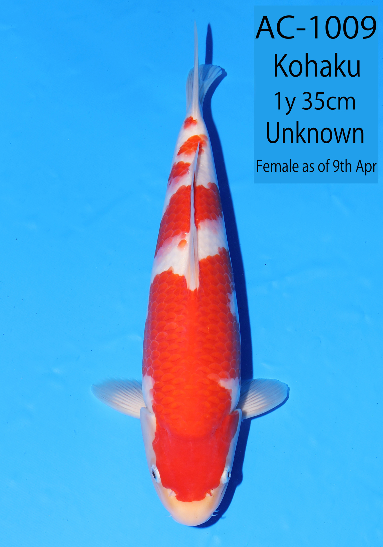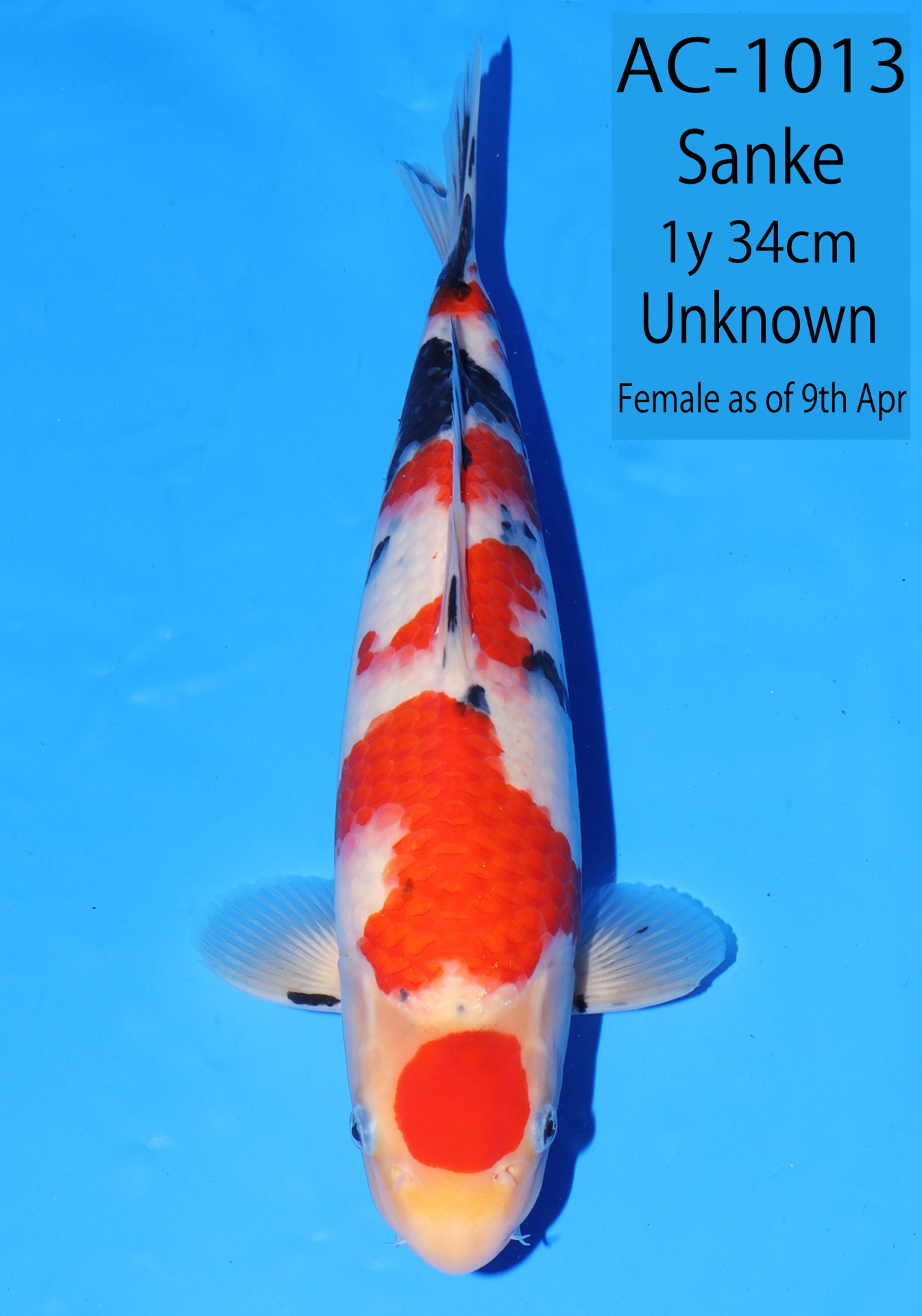 Ooya koi farm 1y 34cm Tancho Kohaku Bidding