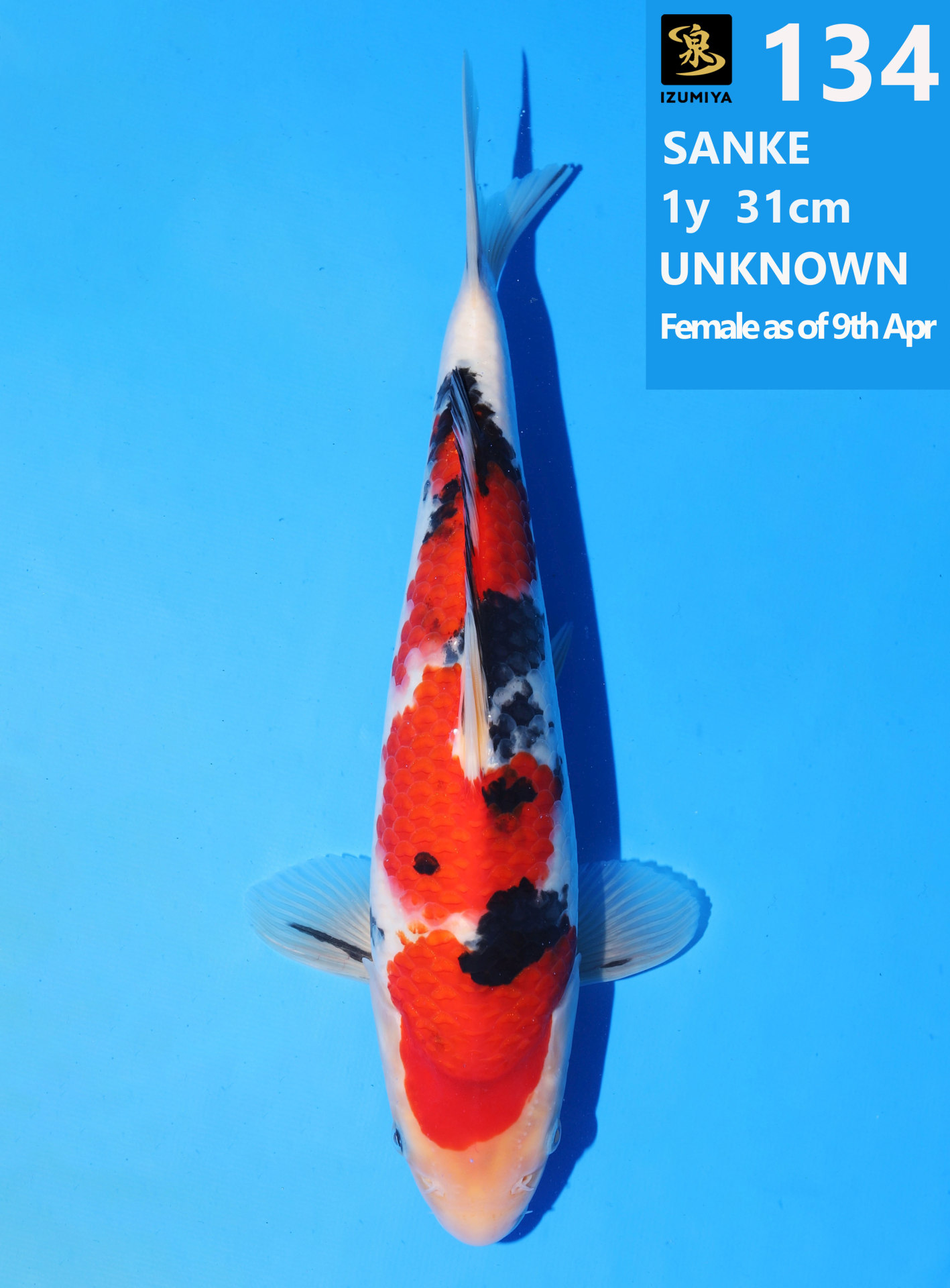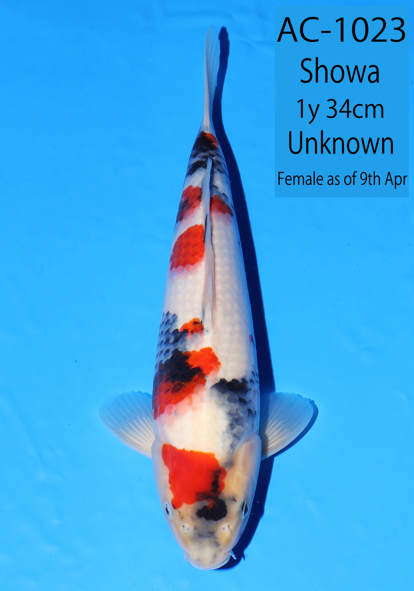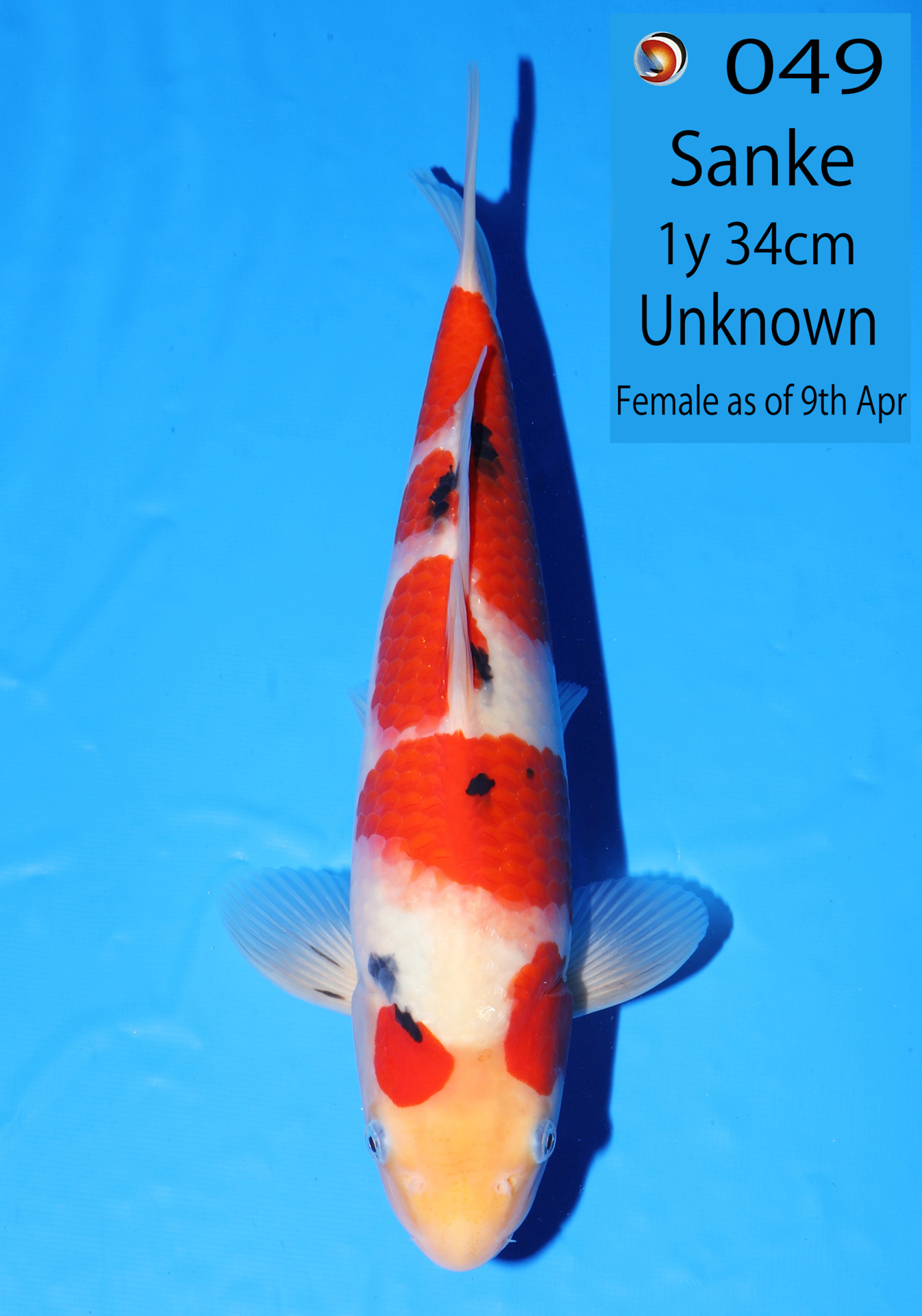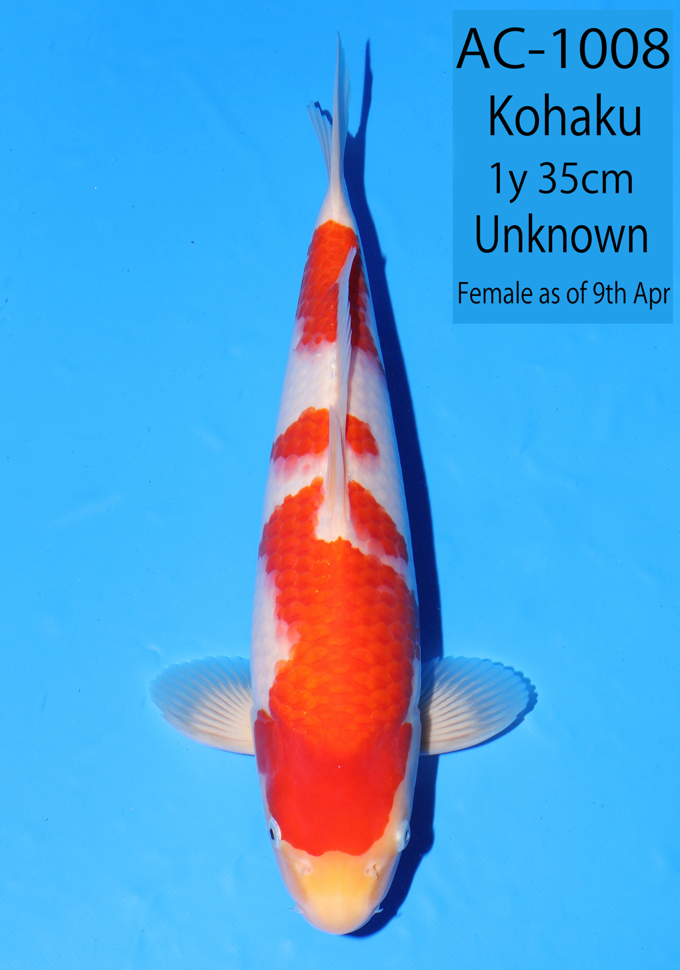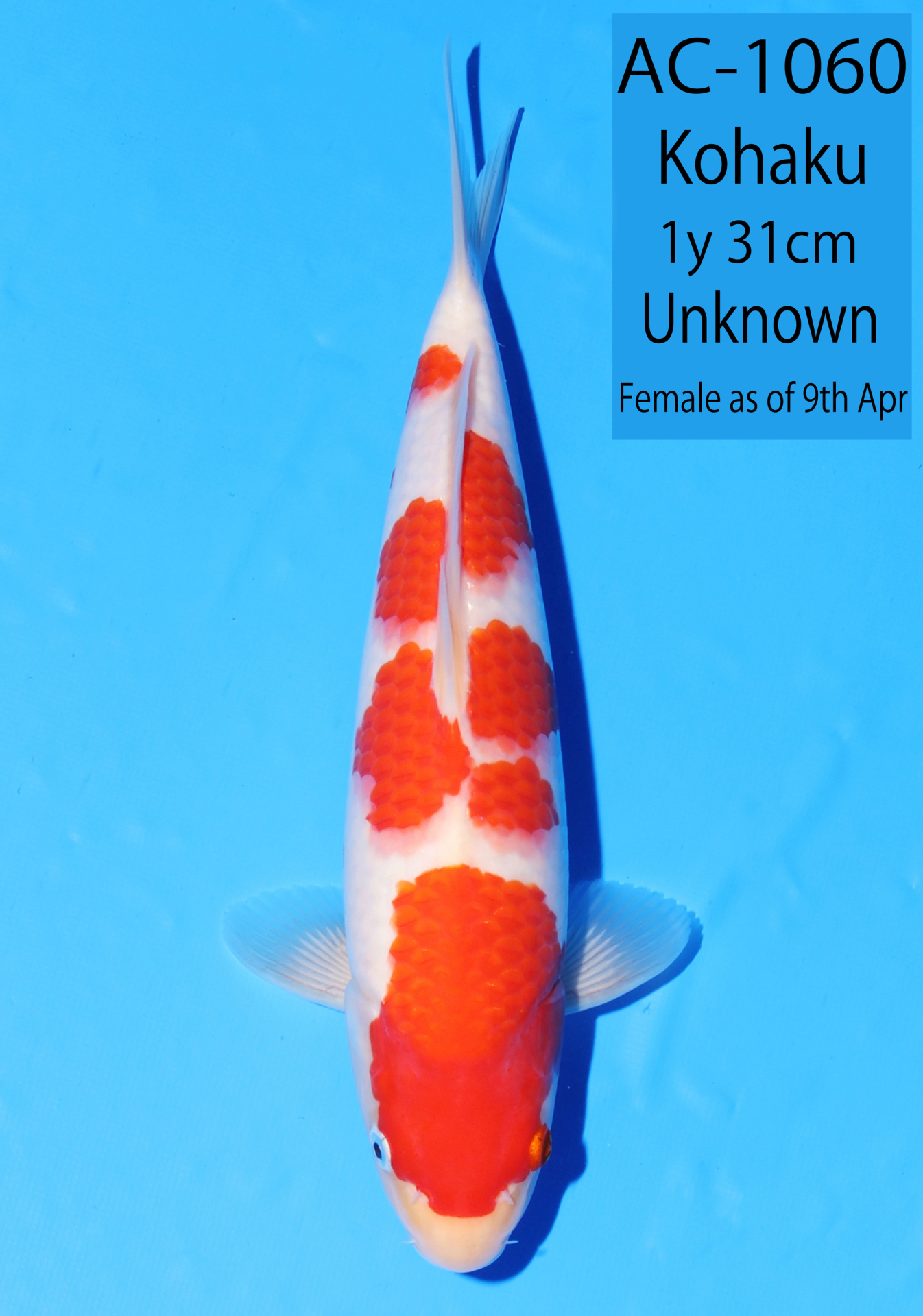 Ooya koi farm 1y 34cm Tancho Kohaku Bidding