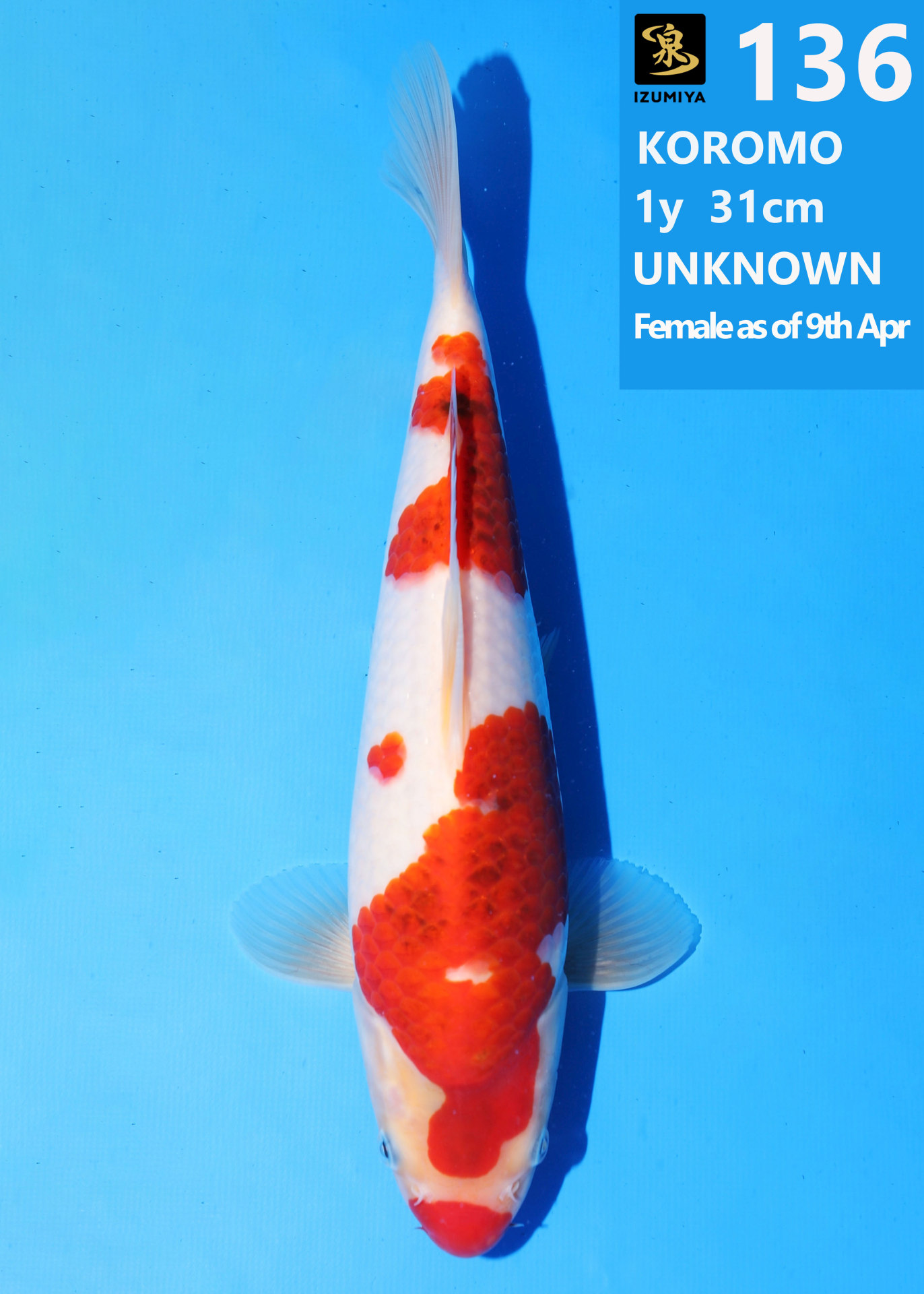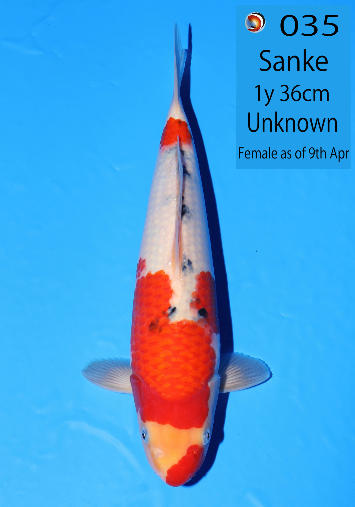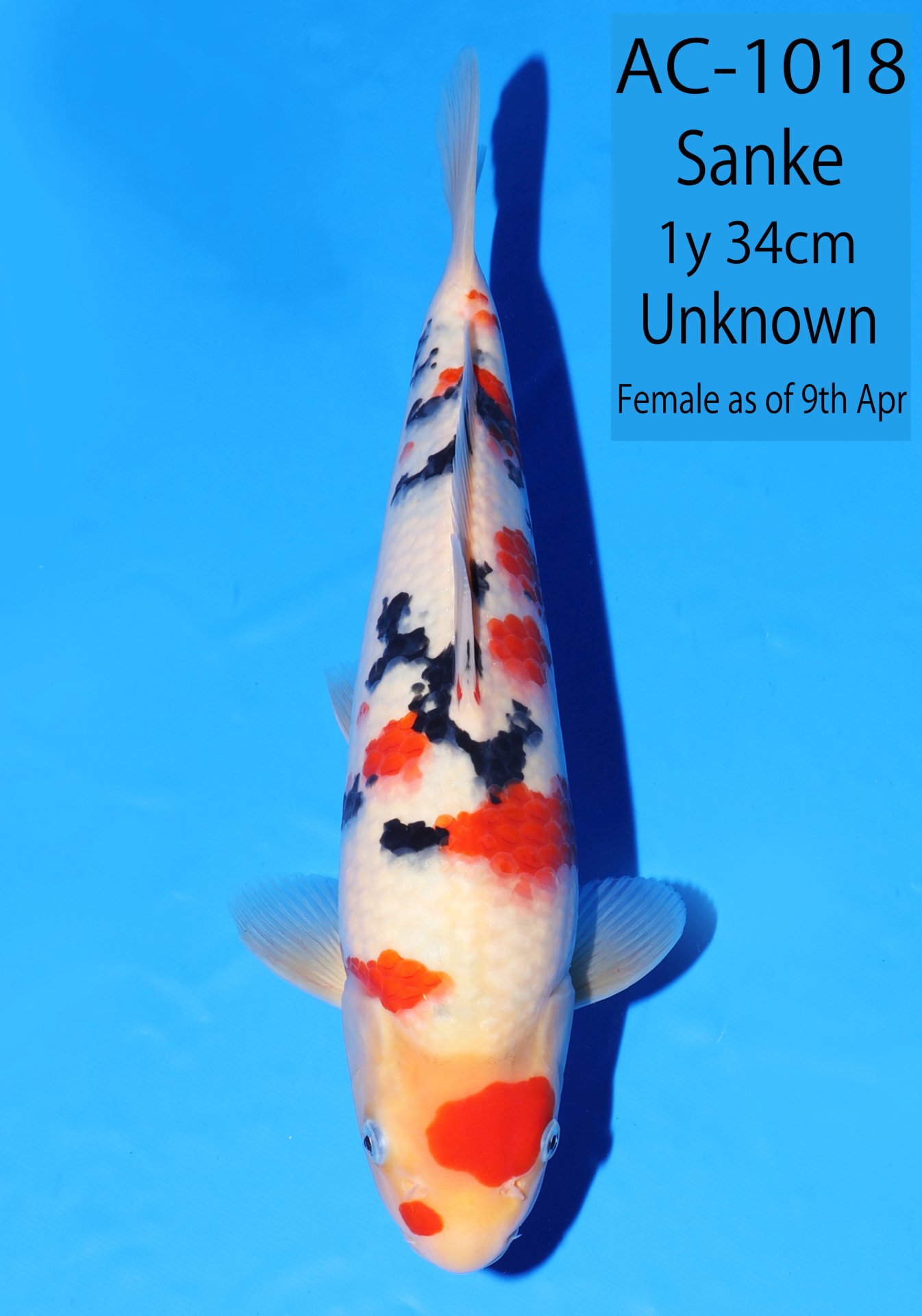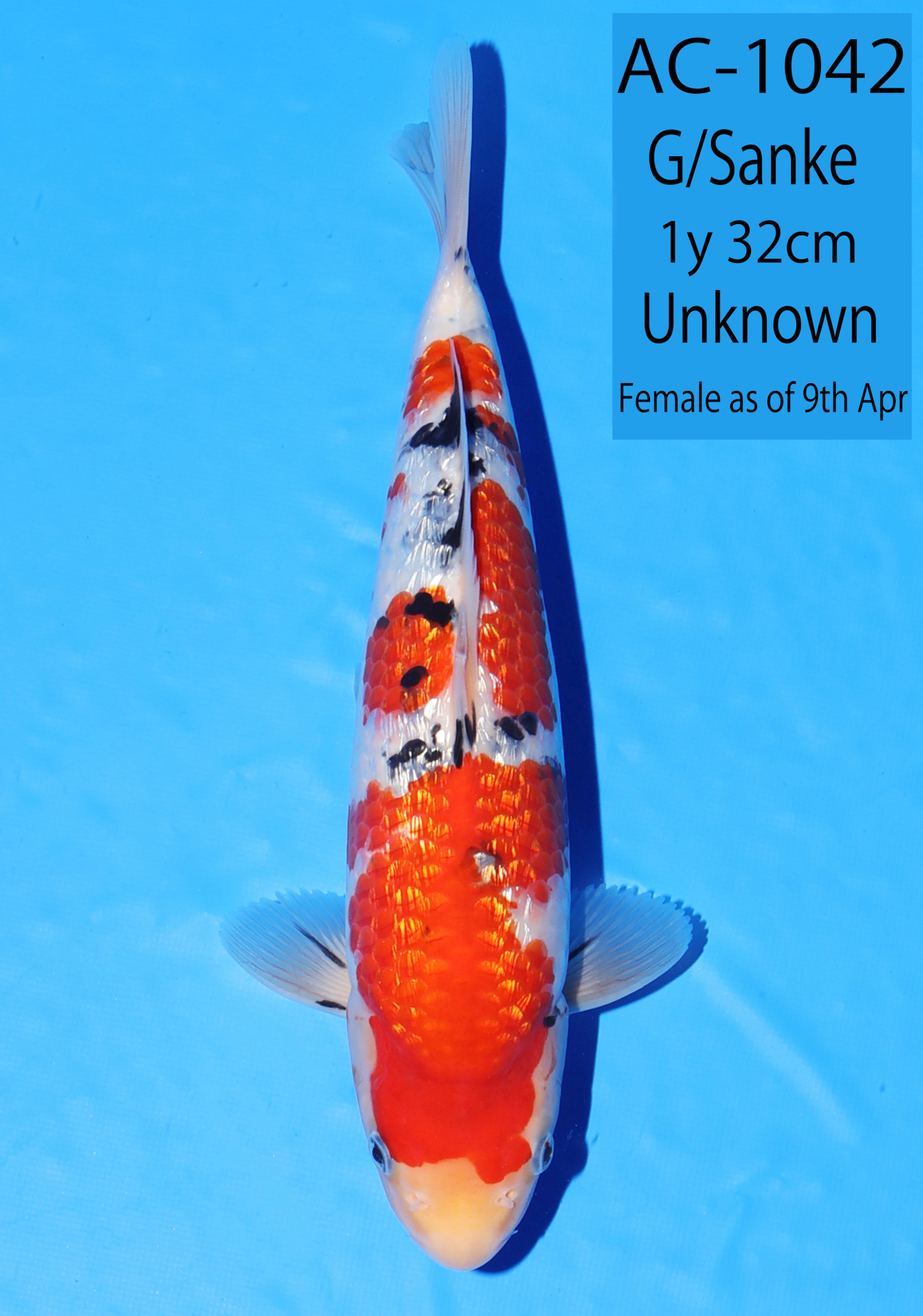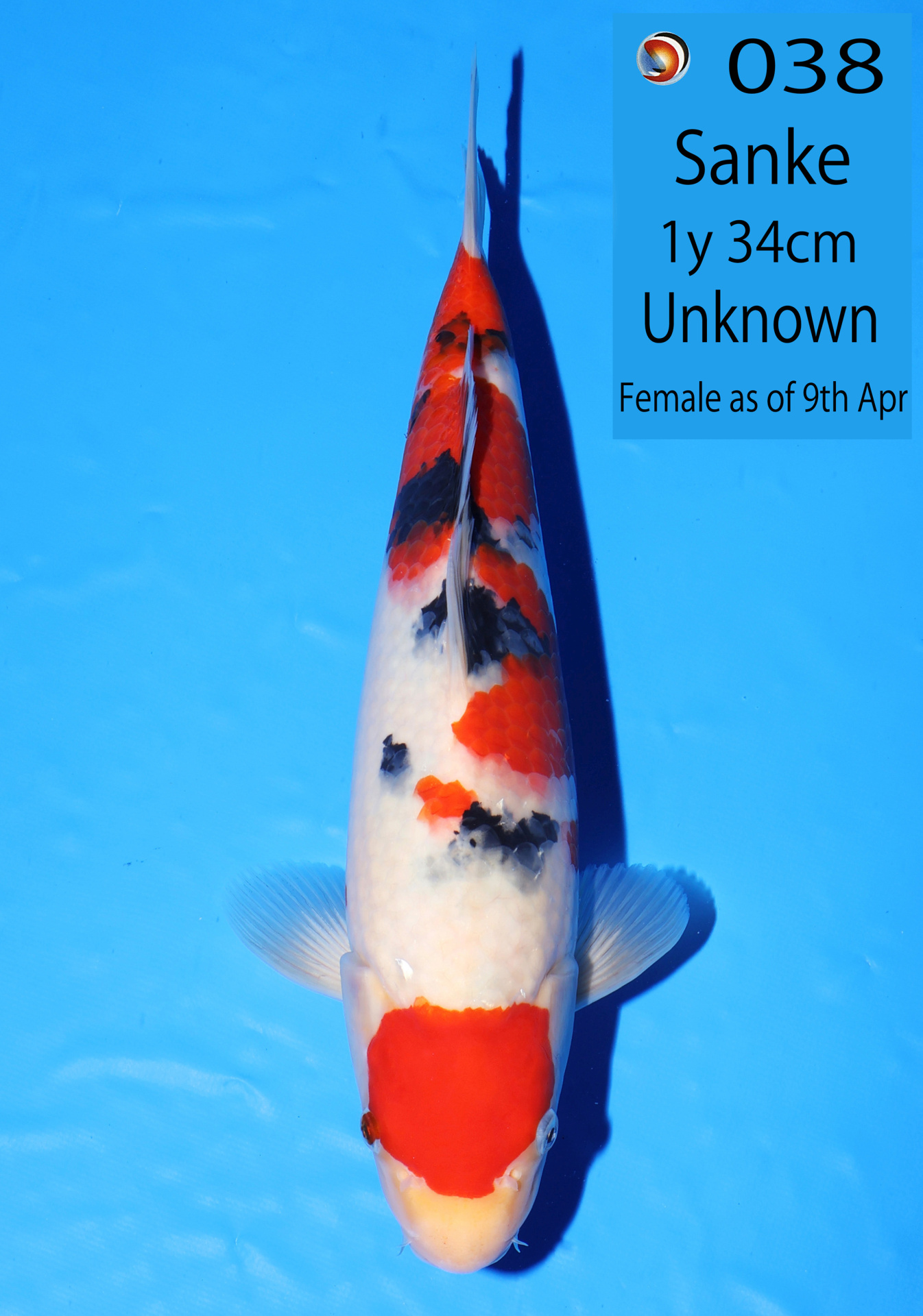 Ooya koi farm 1y 34cm Tancho Kohaku Bidding