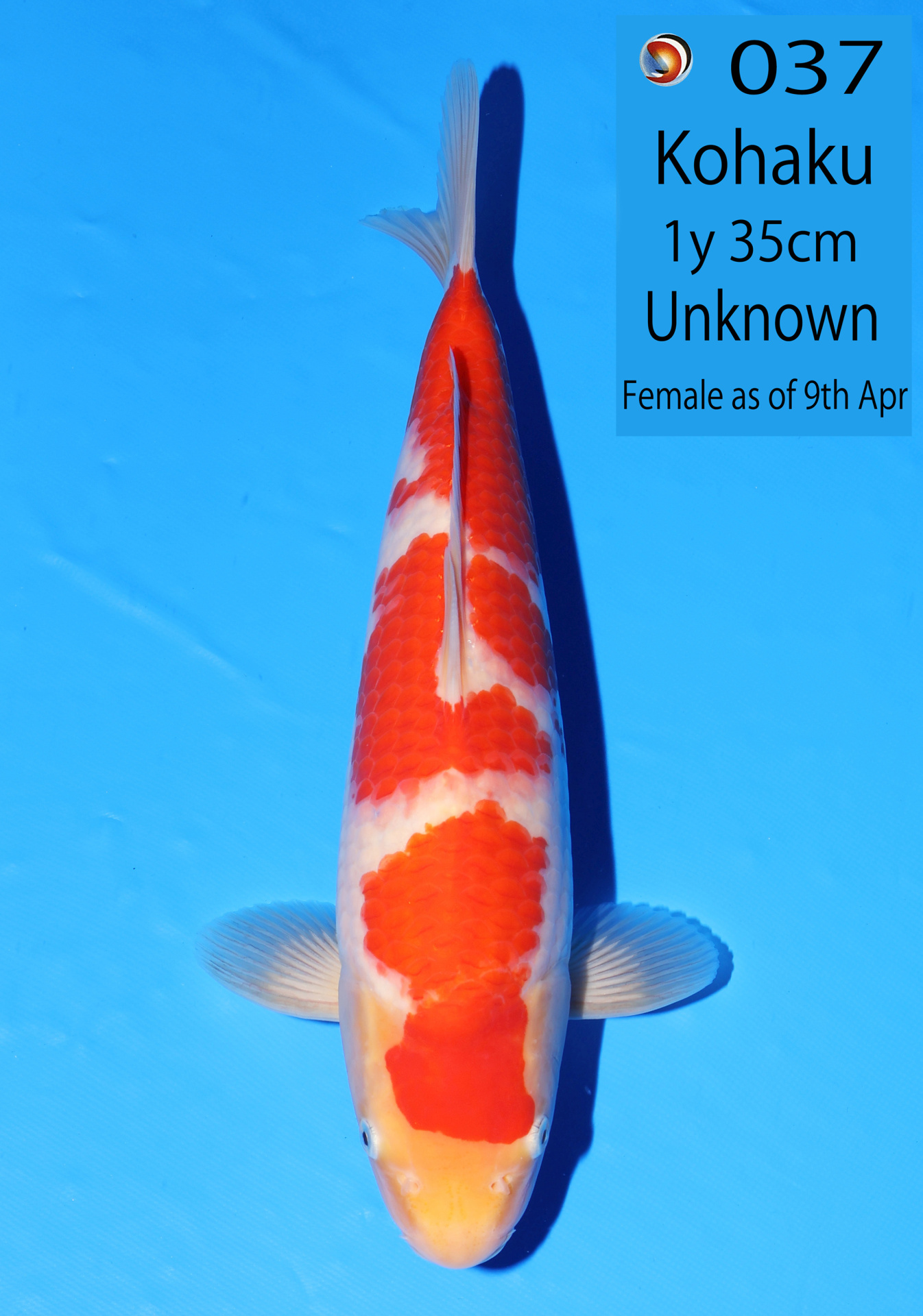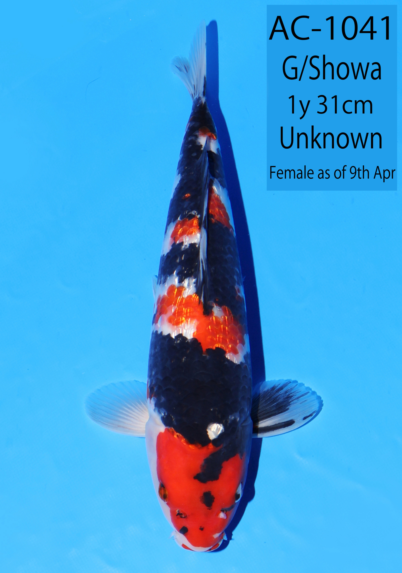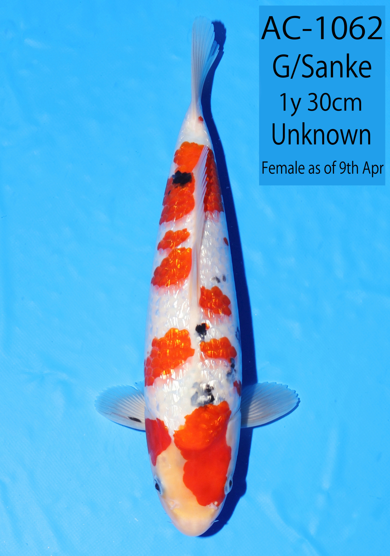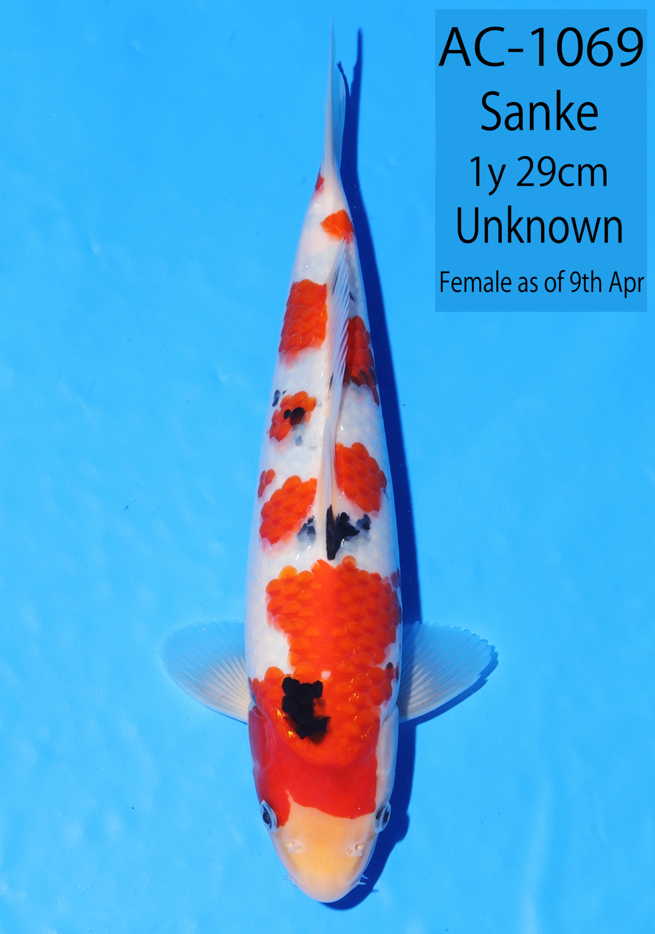 Ooya koi farm 1y 34cm Tancho Kohaku Bidding