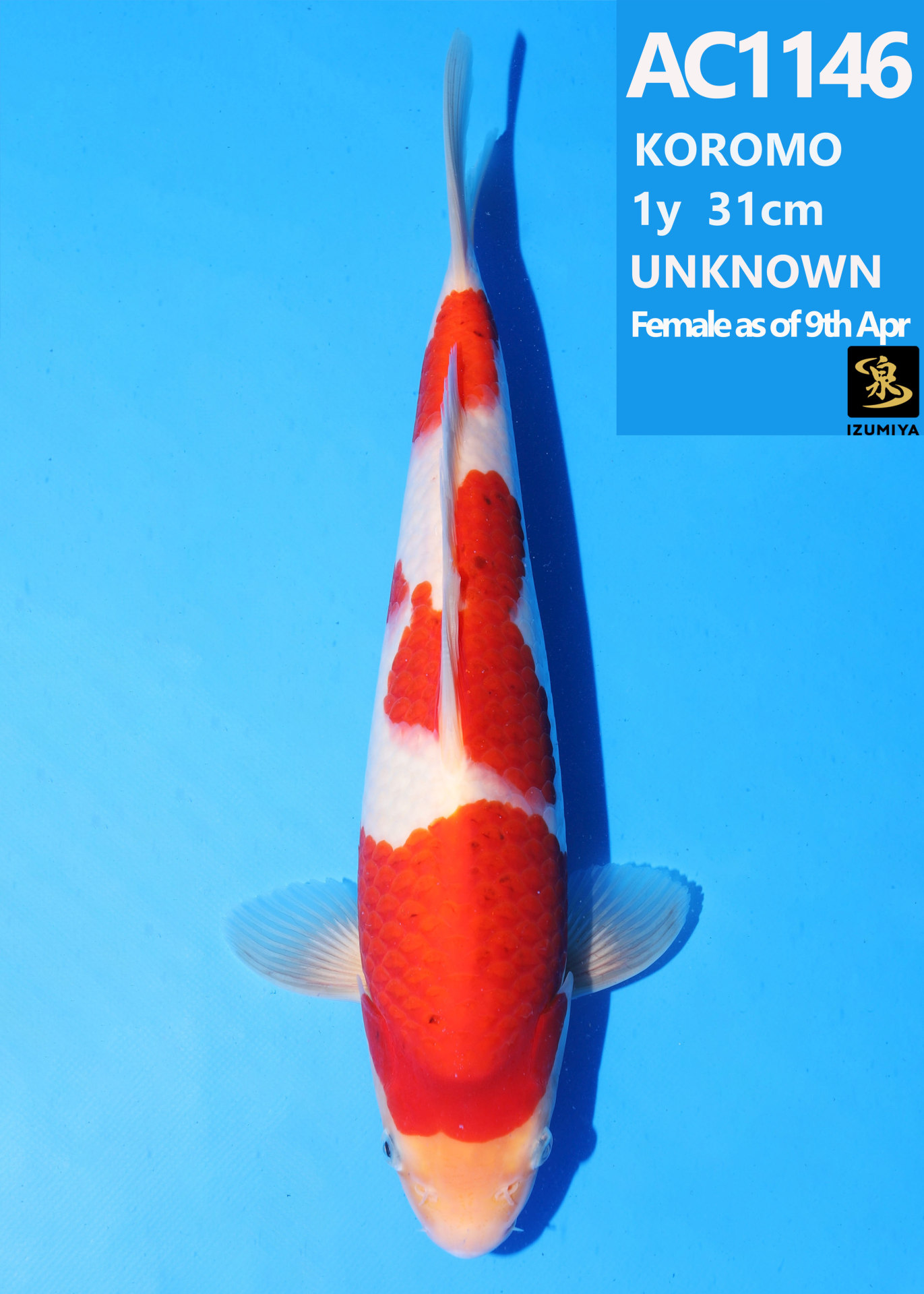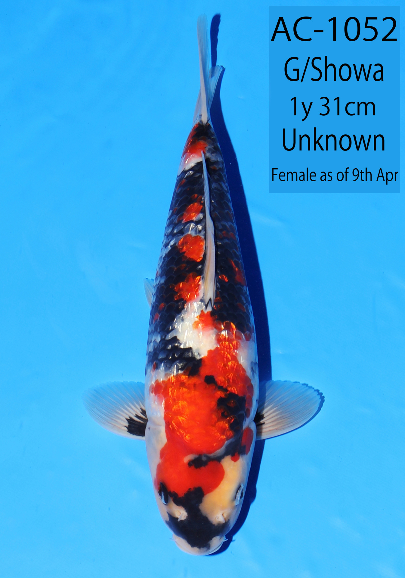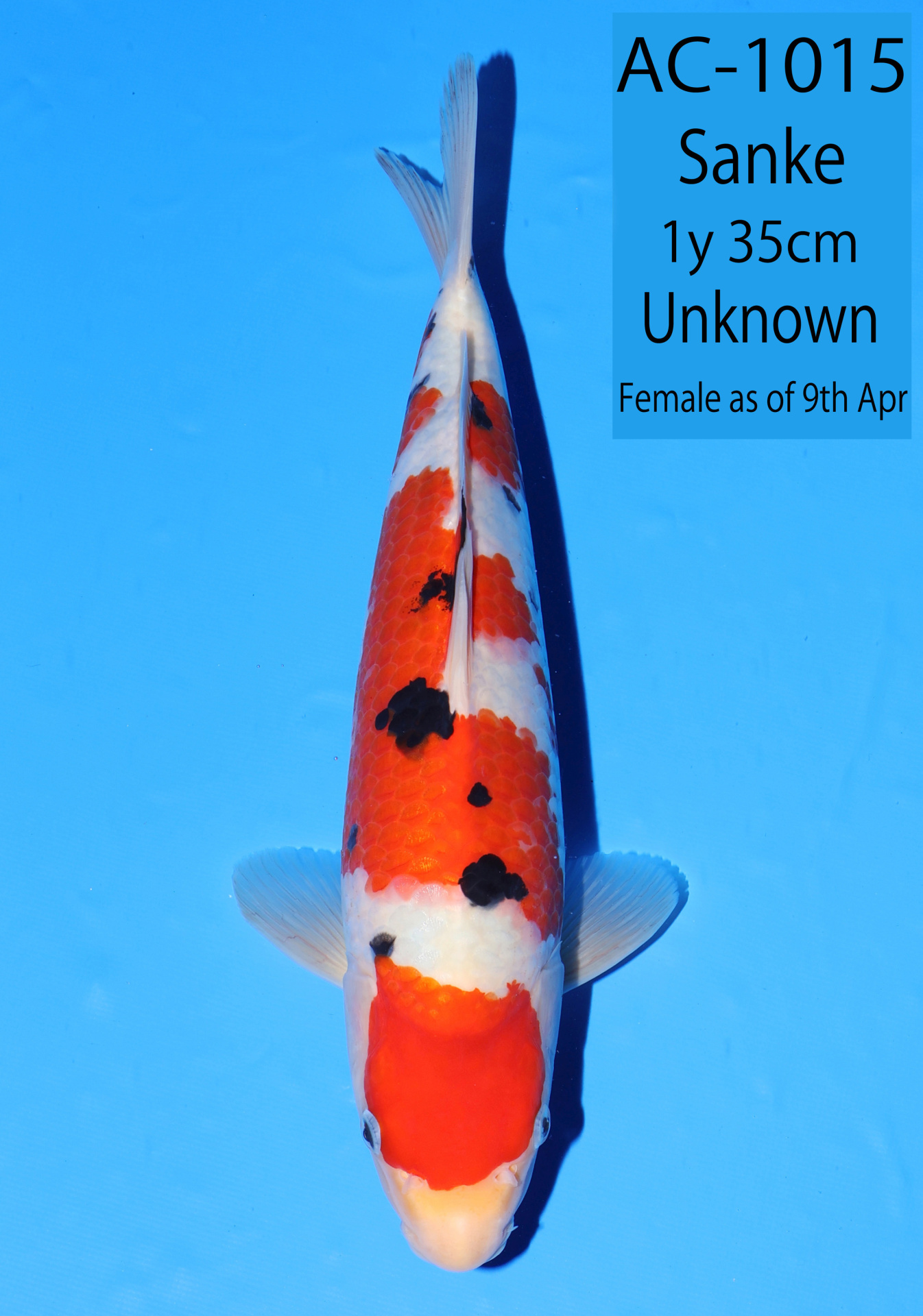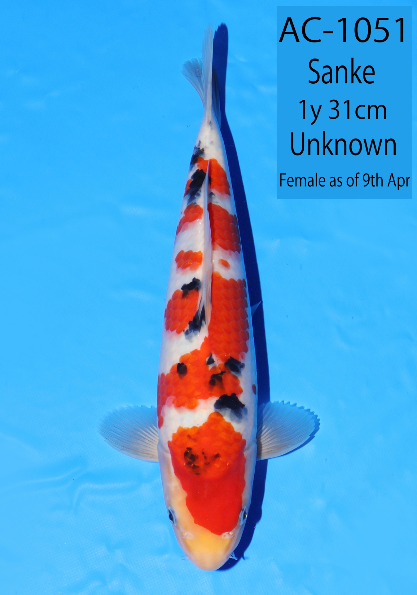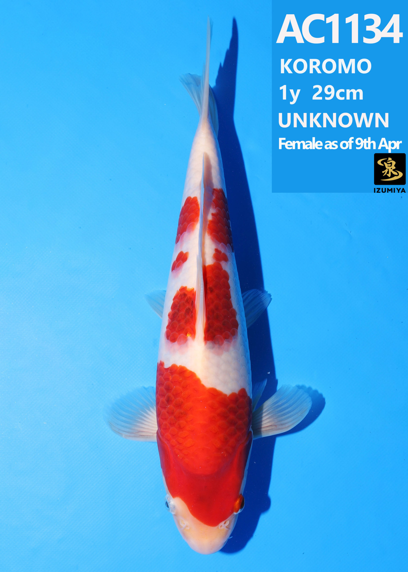 Ooya koi farm 1y 34cm Tancho Kohaku Bidding