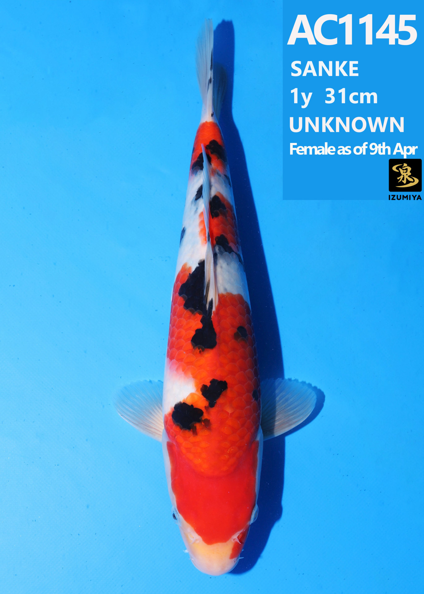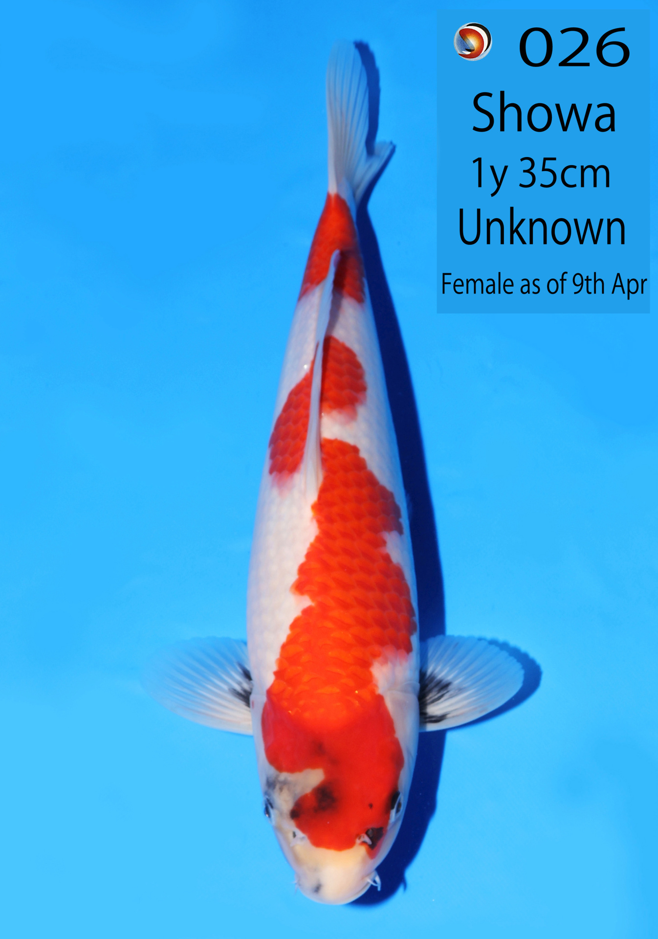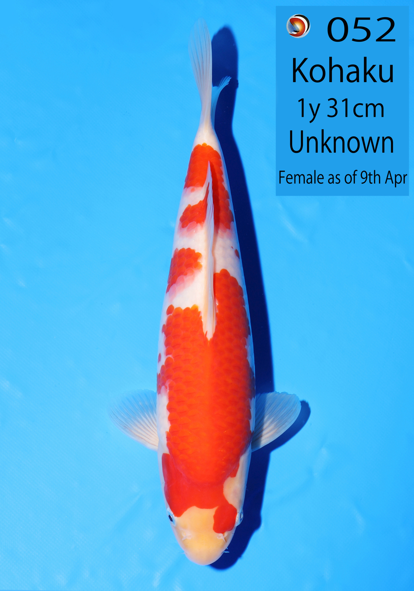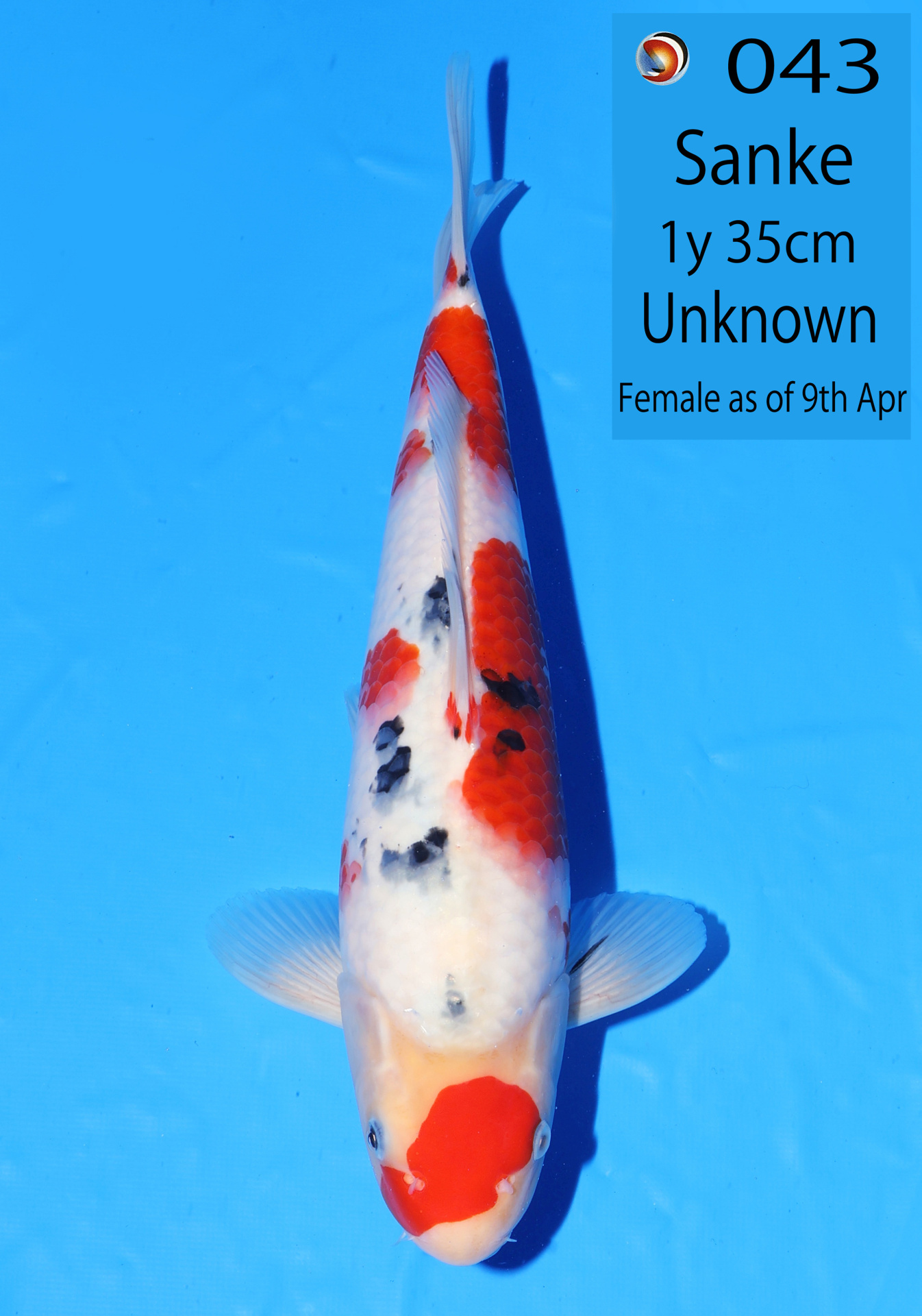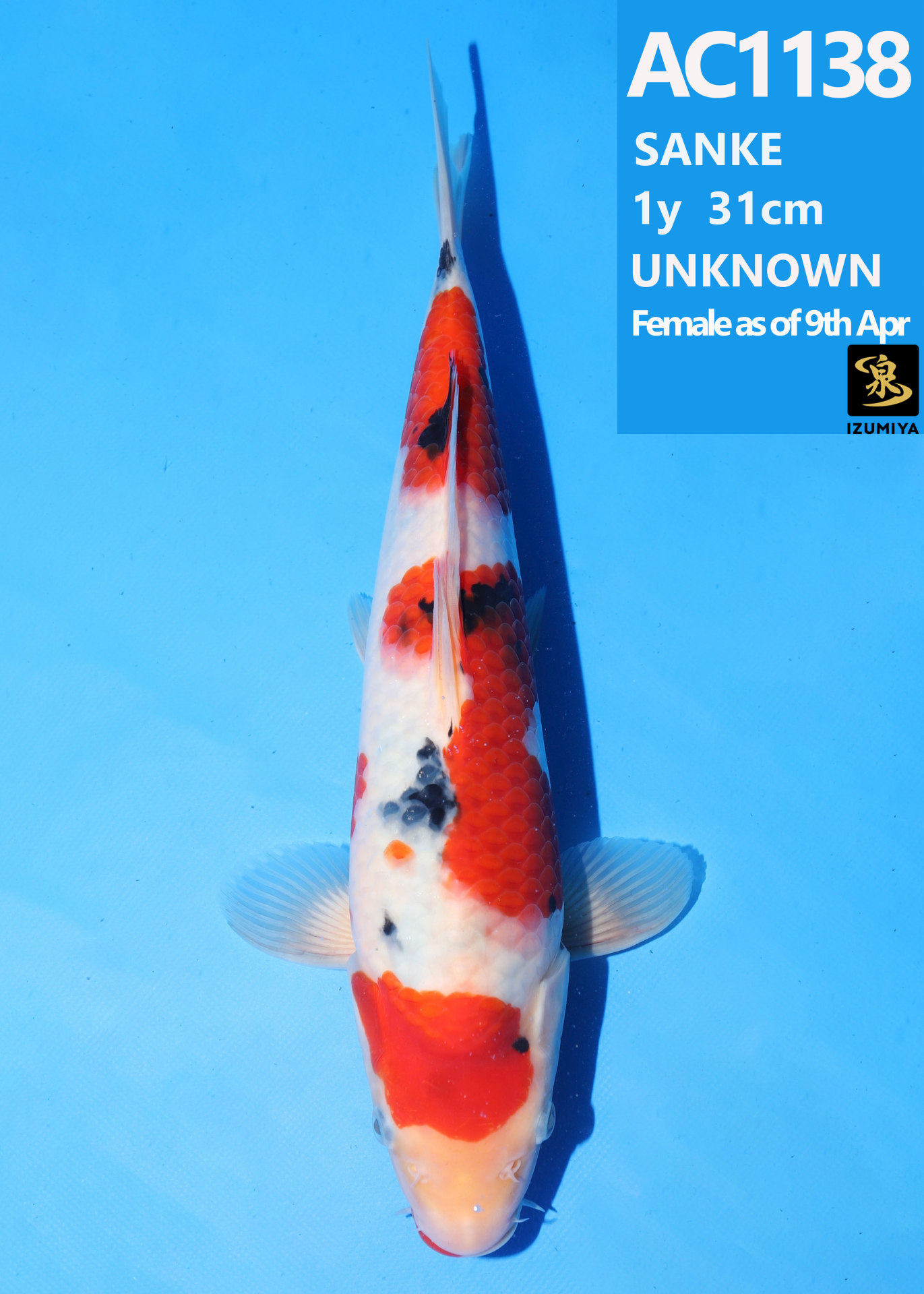 Ooya koi farm 1y 34cm Tancho Kohaku Bidding