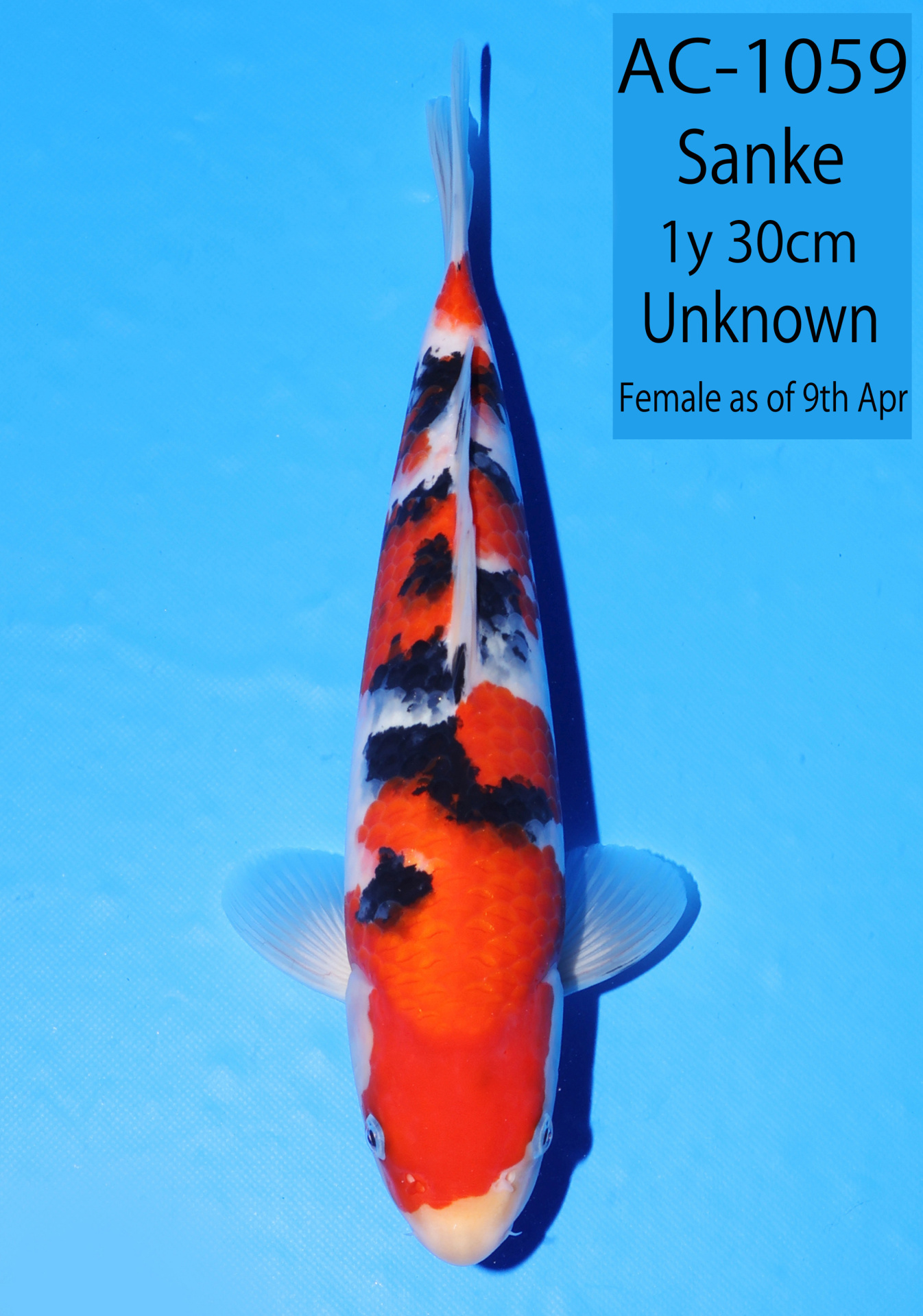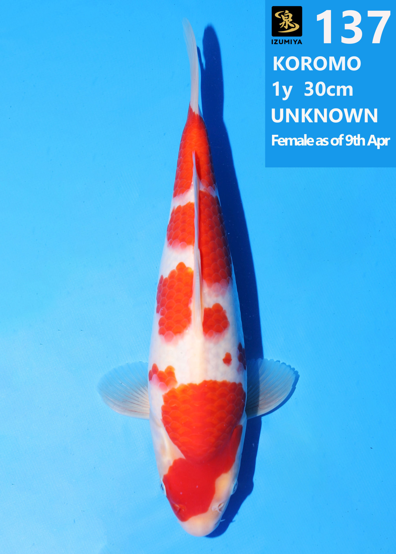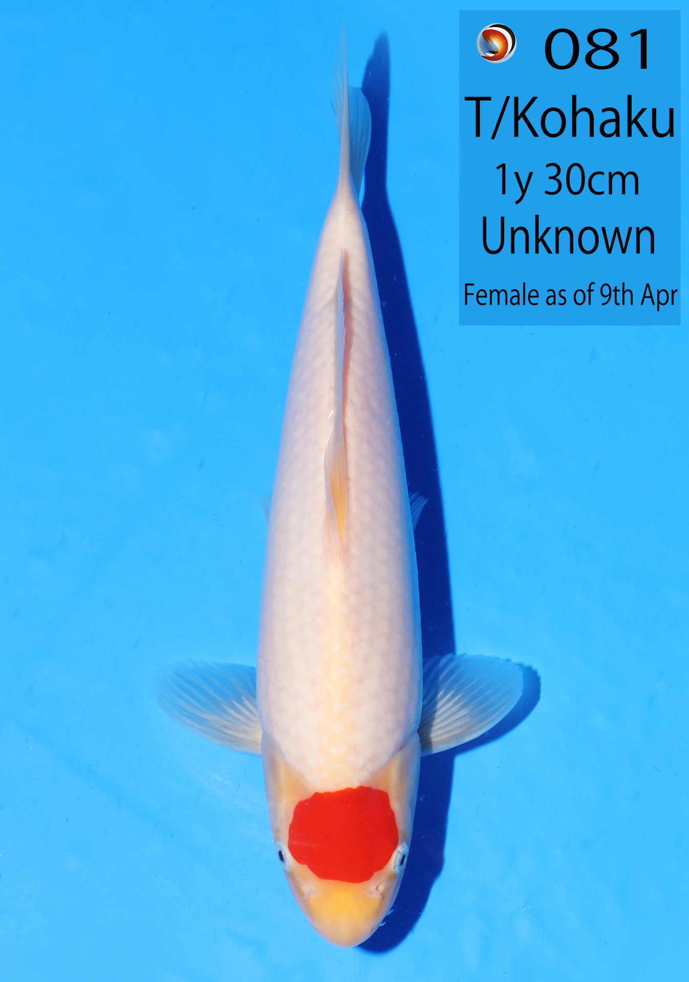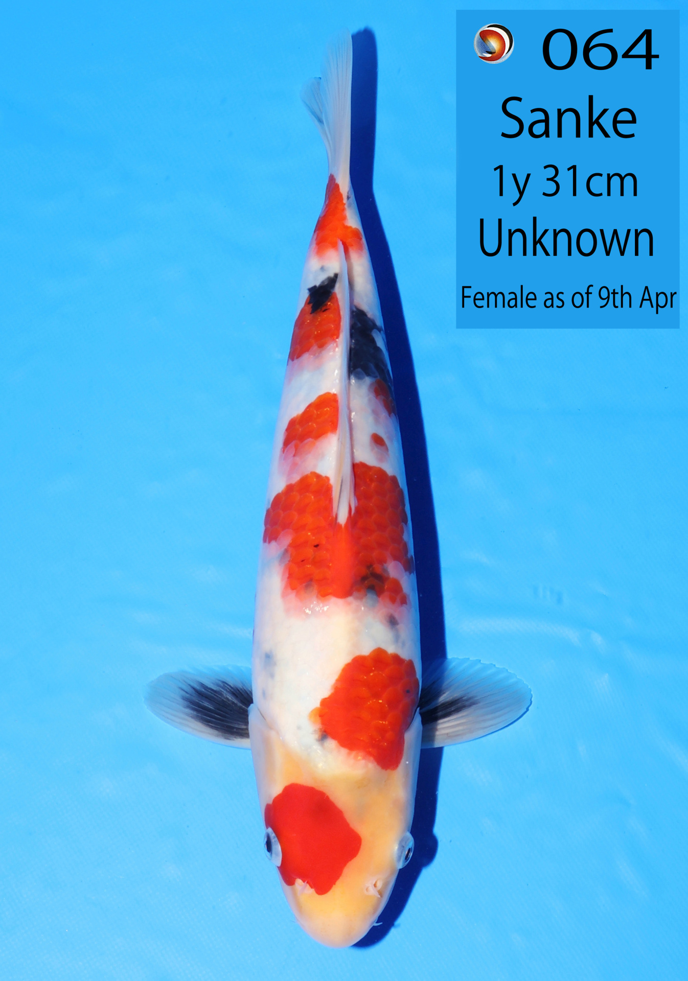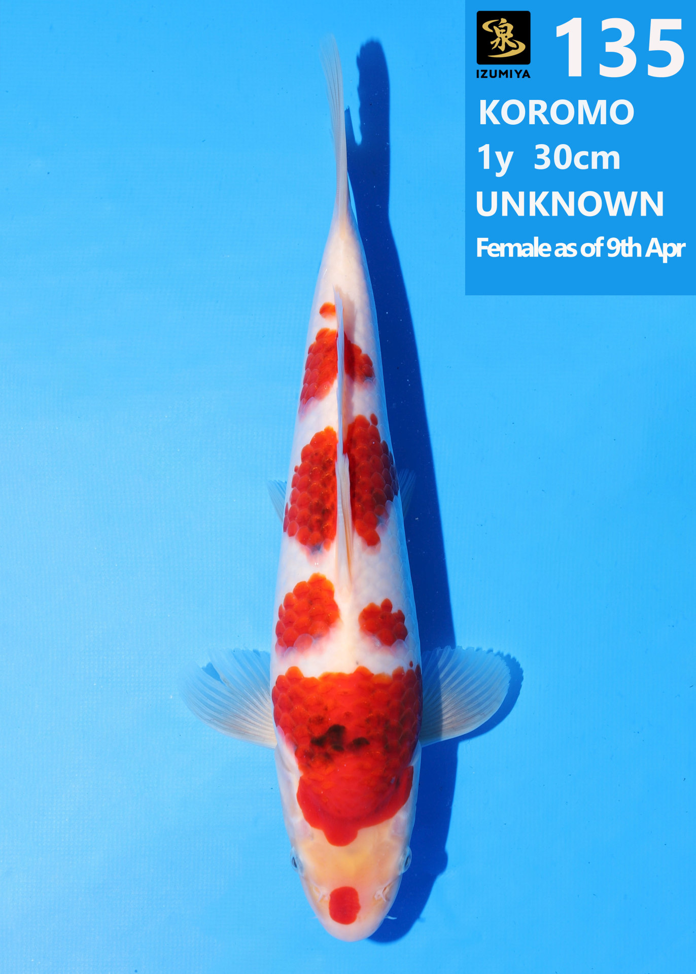 Ooya koi farm 1y 34cm Tancho Kohaku Bidding