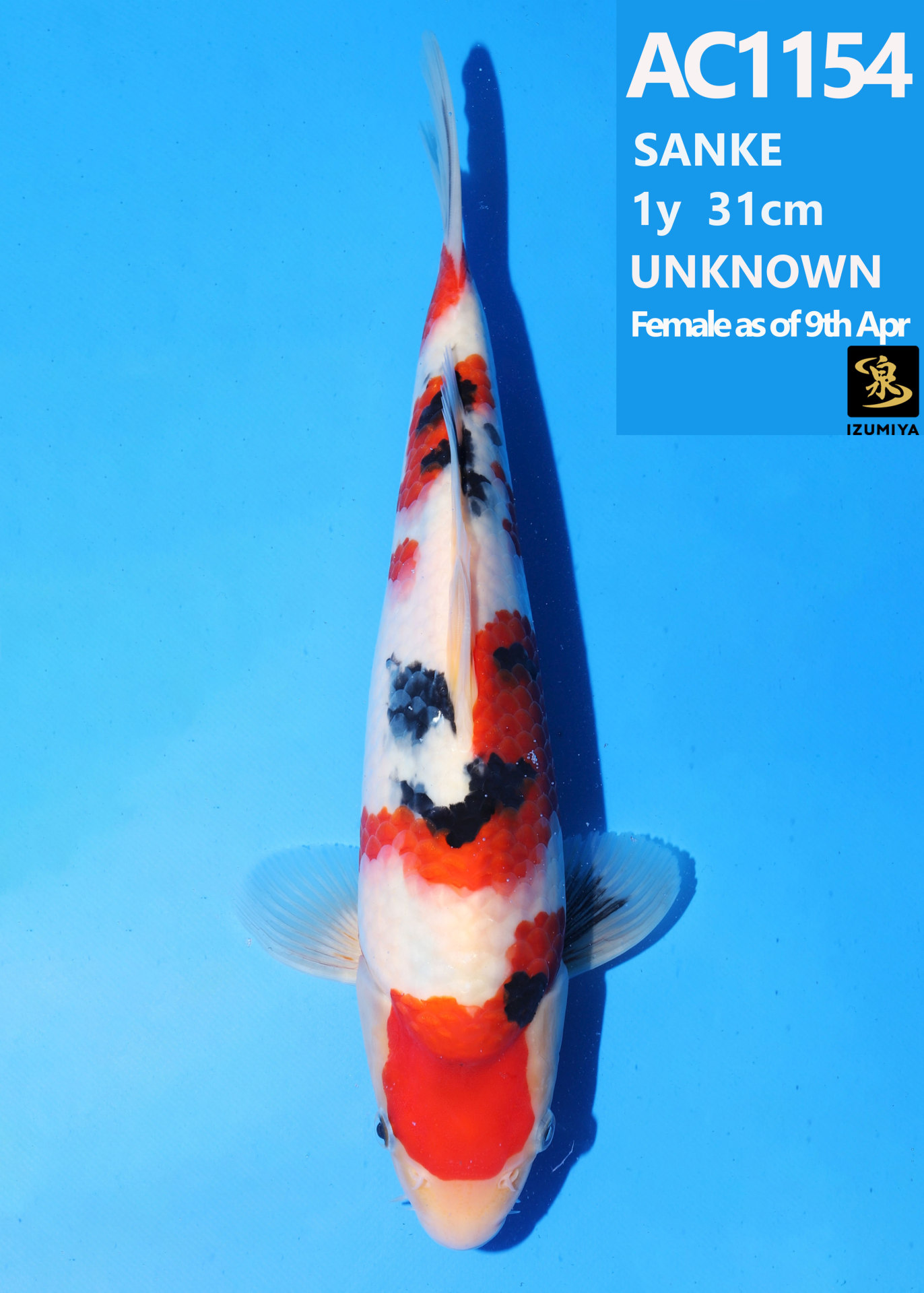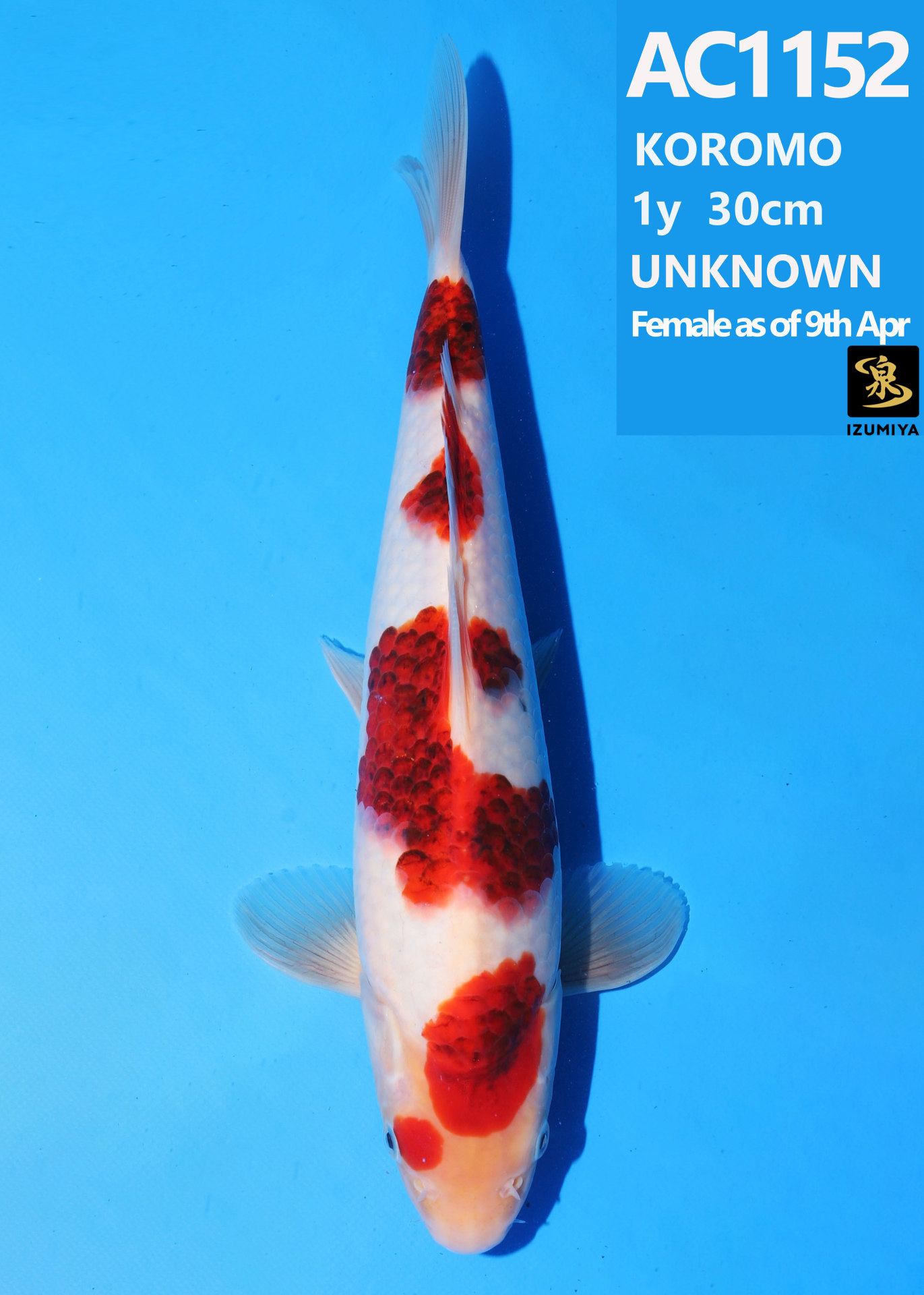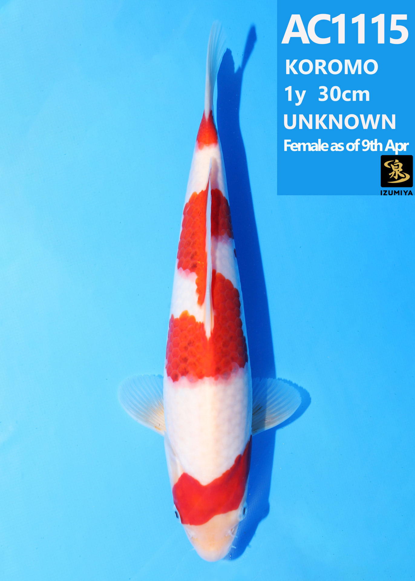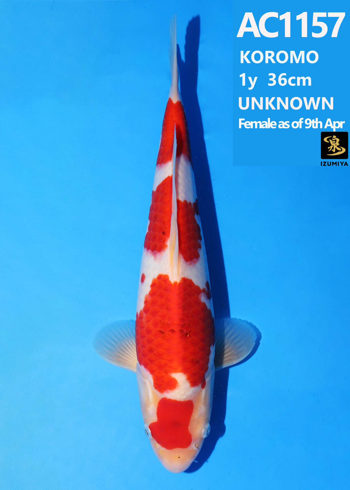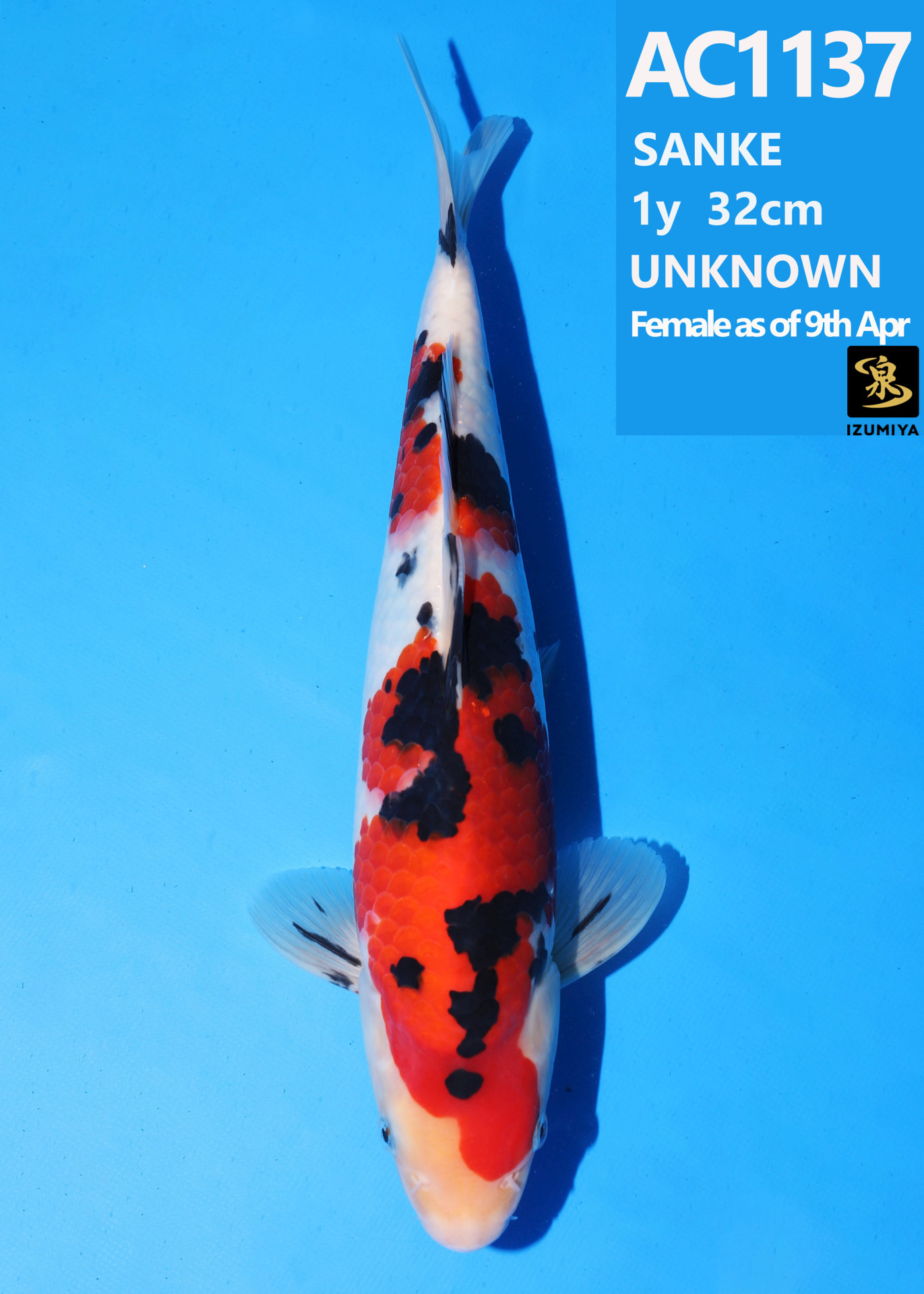 Ooya koi farm 1y 34cm Tancho Kohaku Bidding