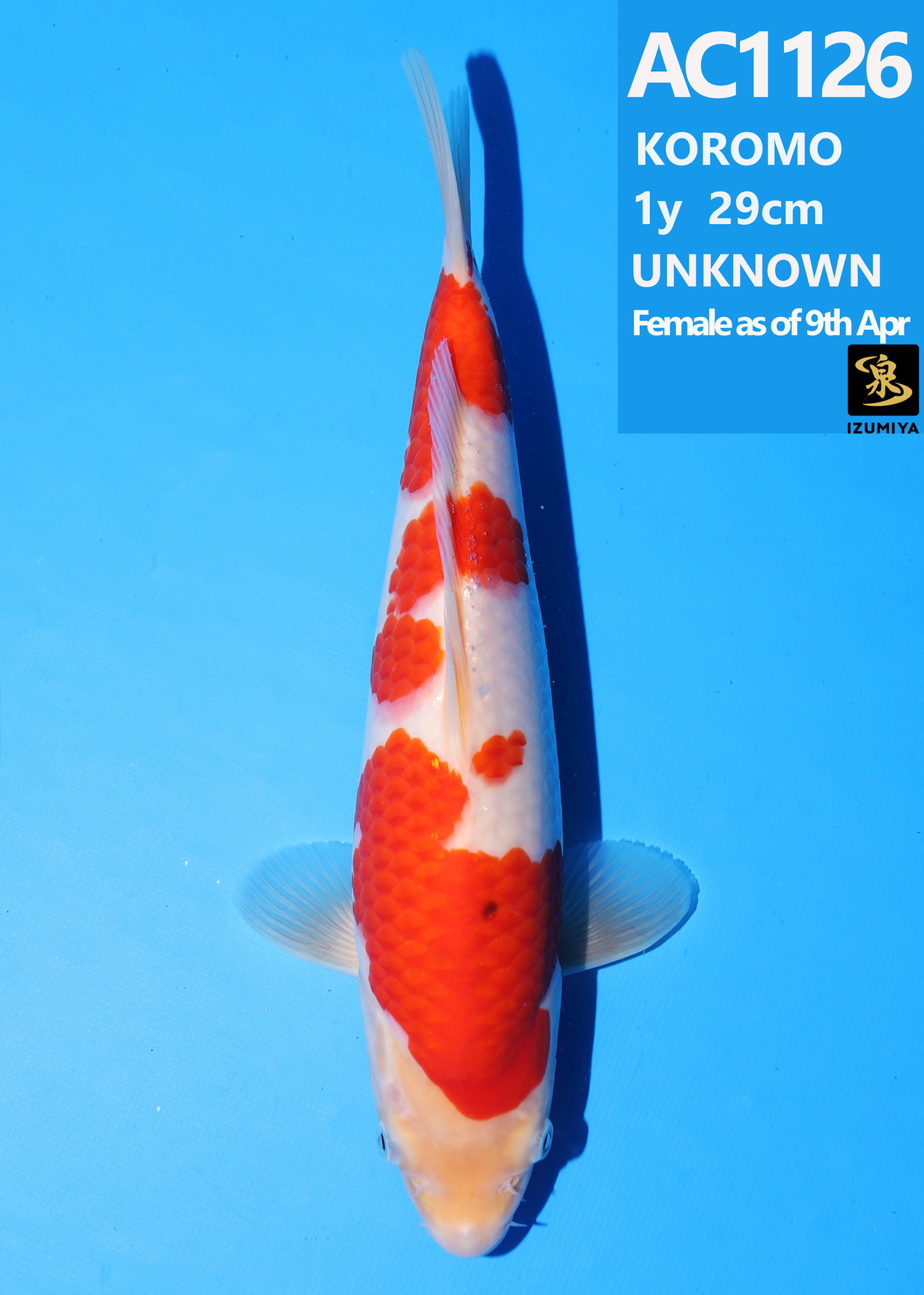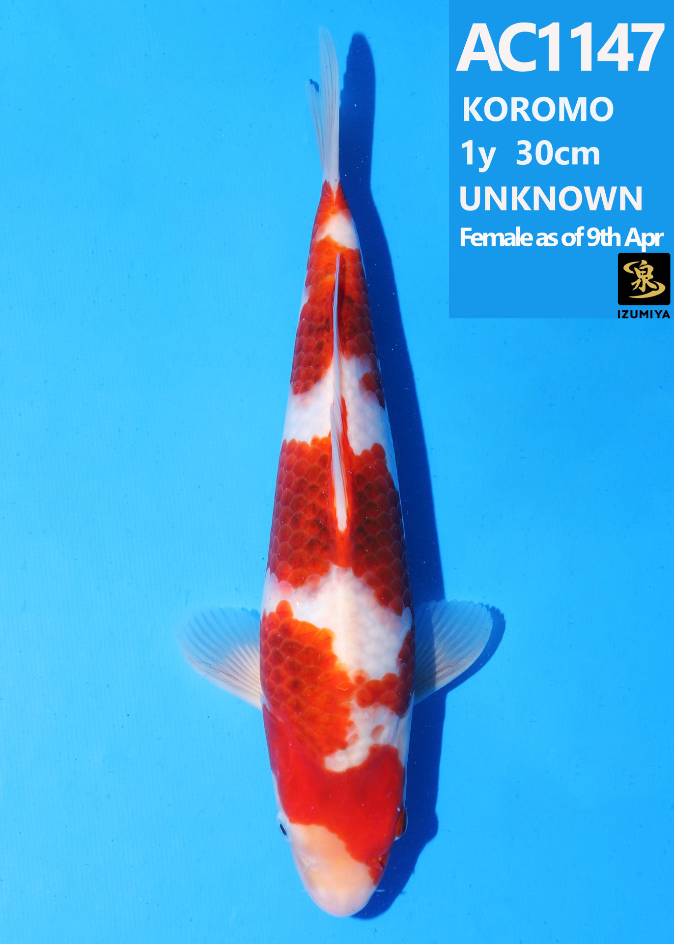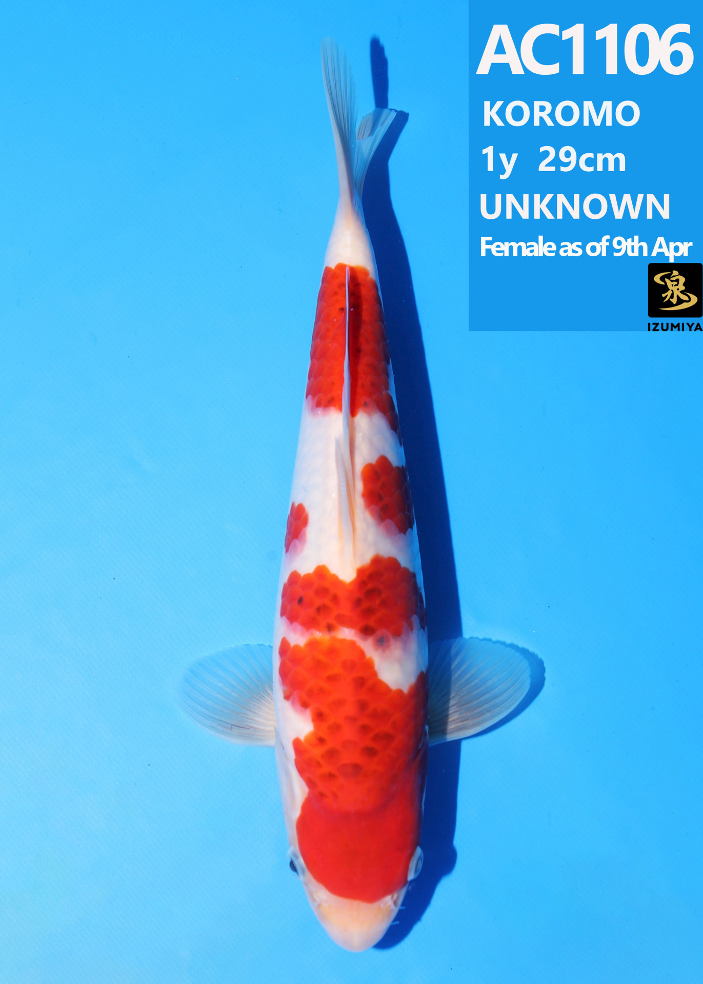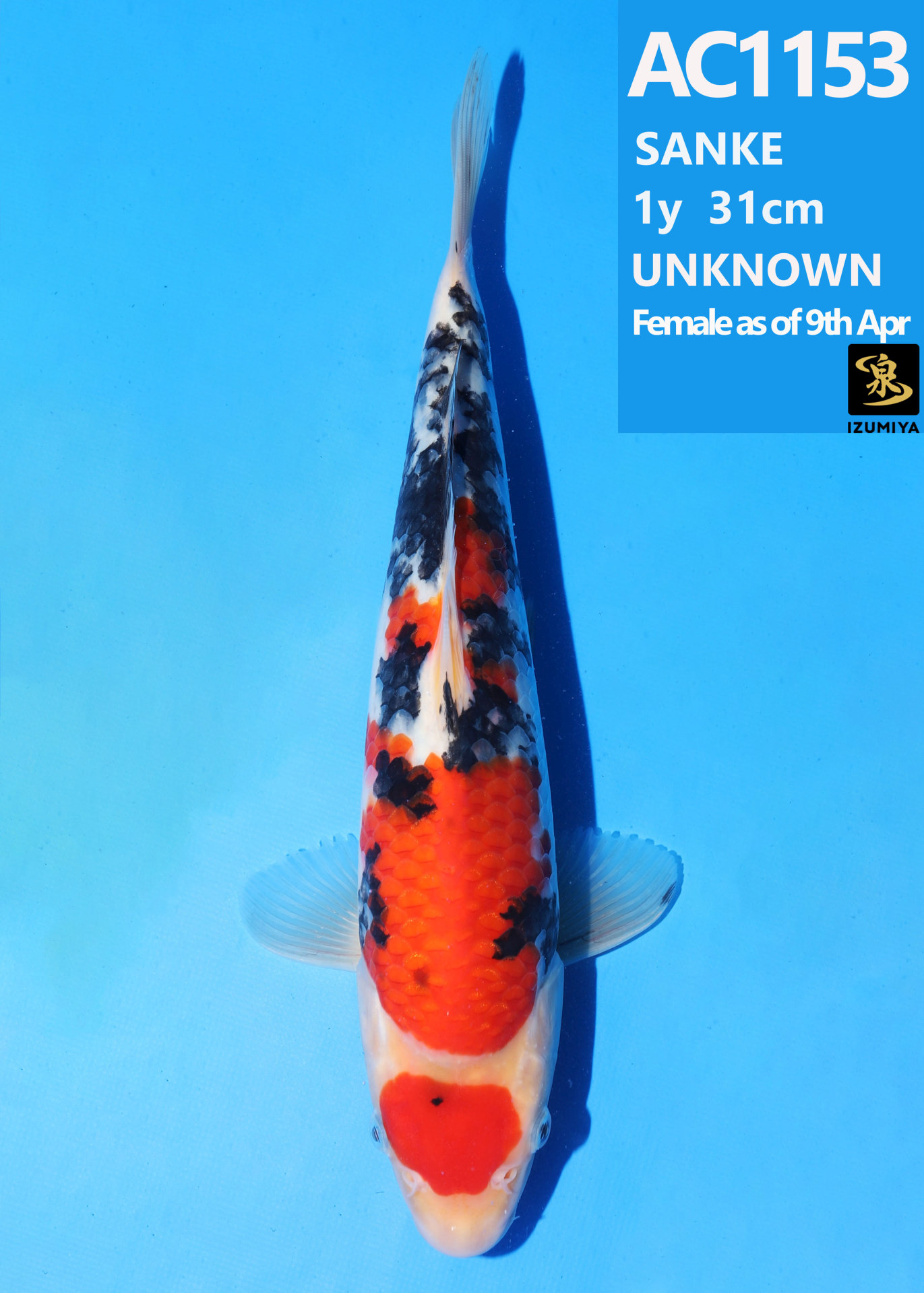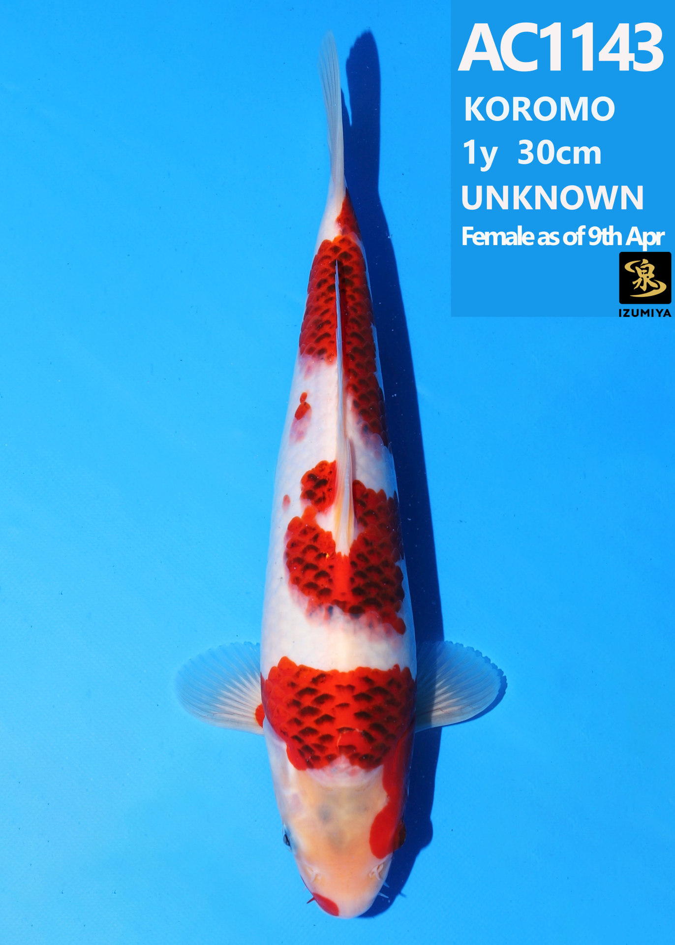 Ooya koi farm 1y 34cm Tancho Kohaku Bidding
