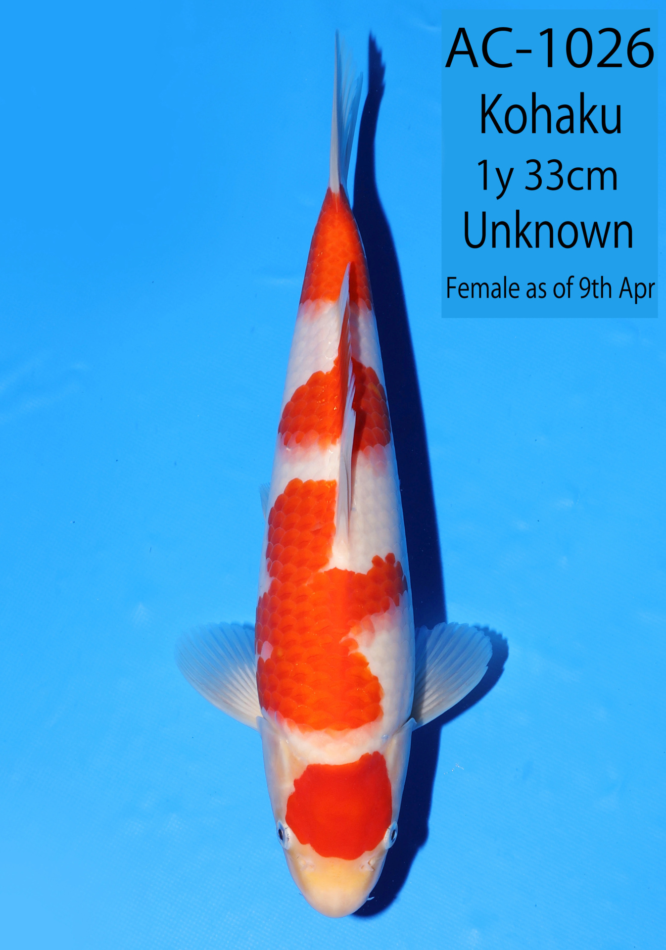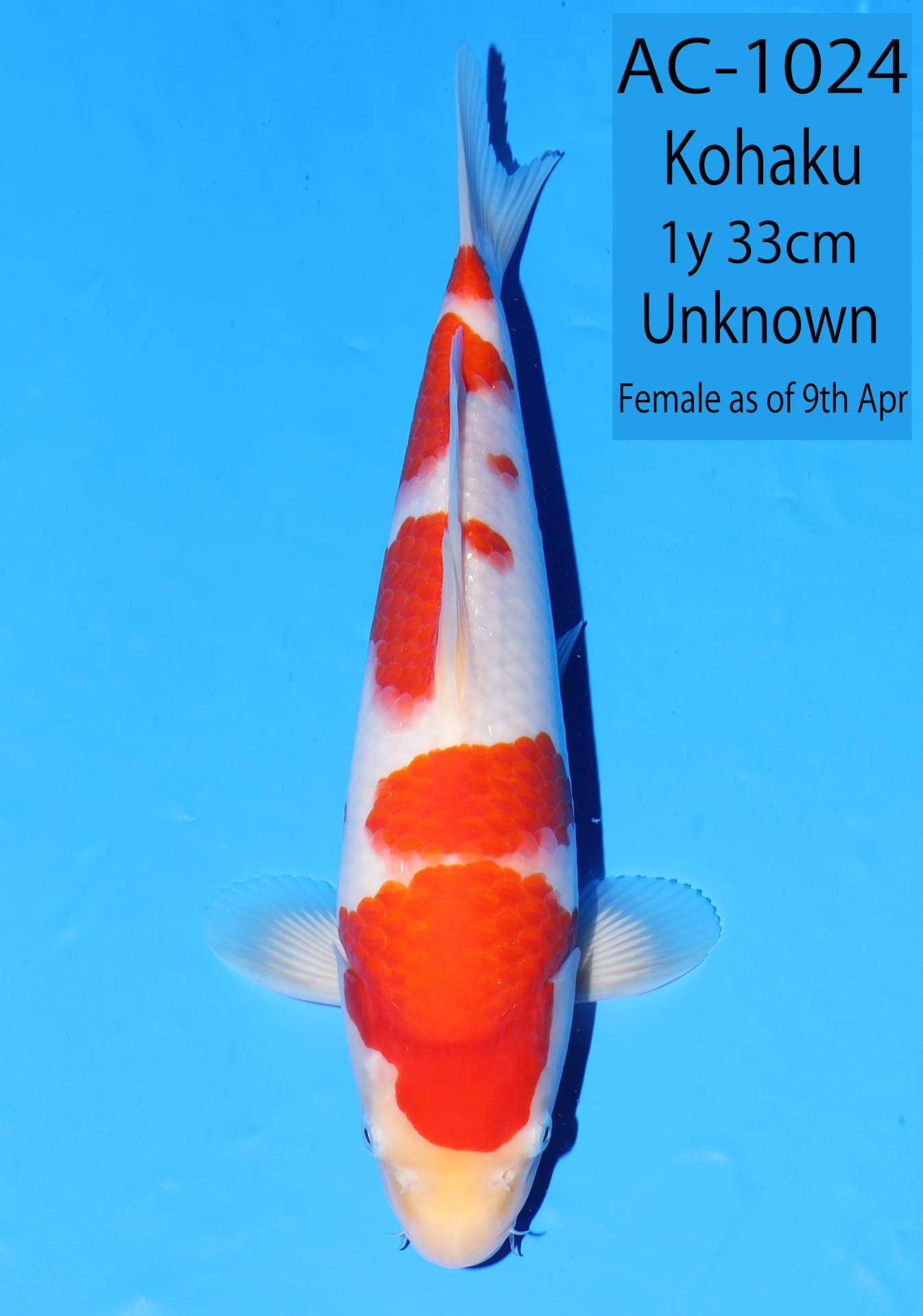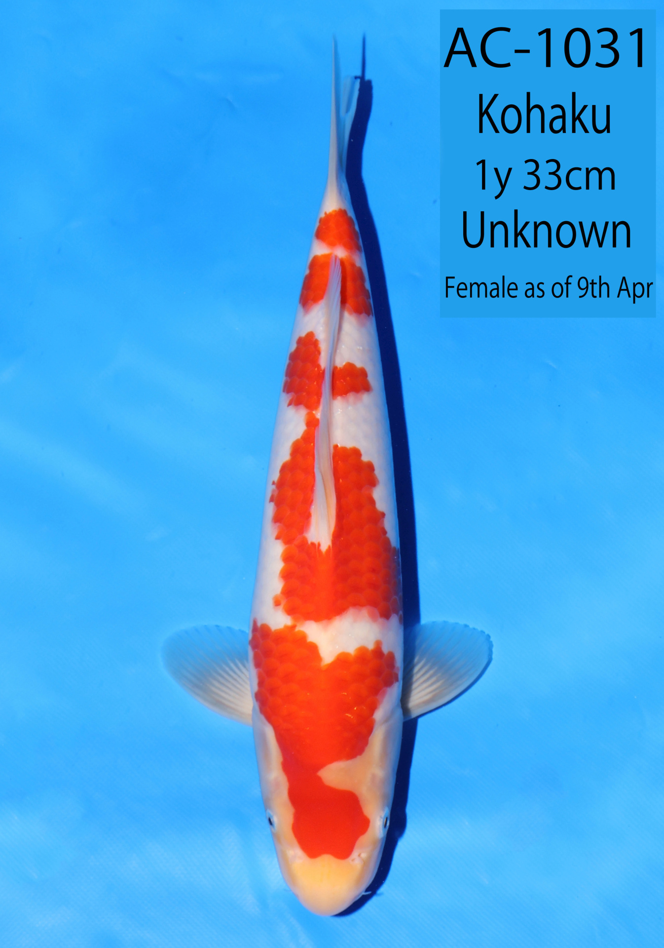 Ooya koi farm 1y 33cm Tancho Kohaku Bidding