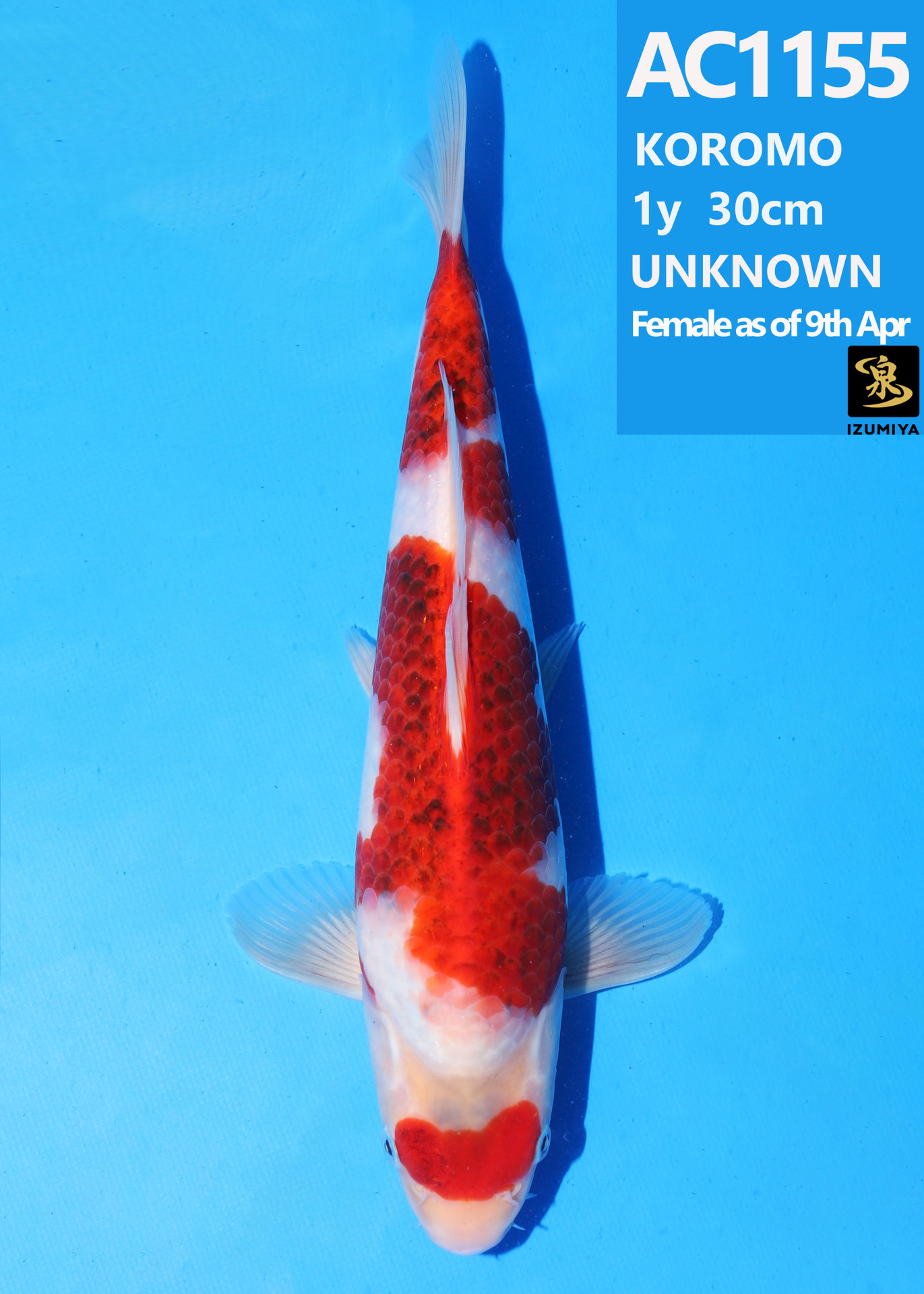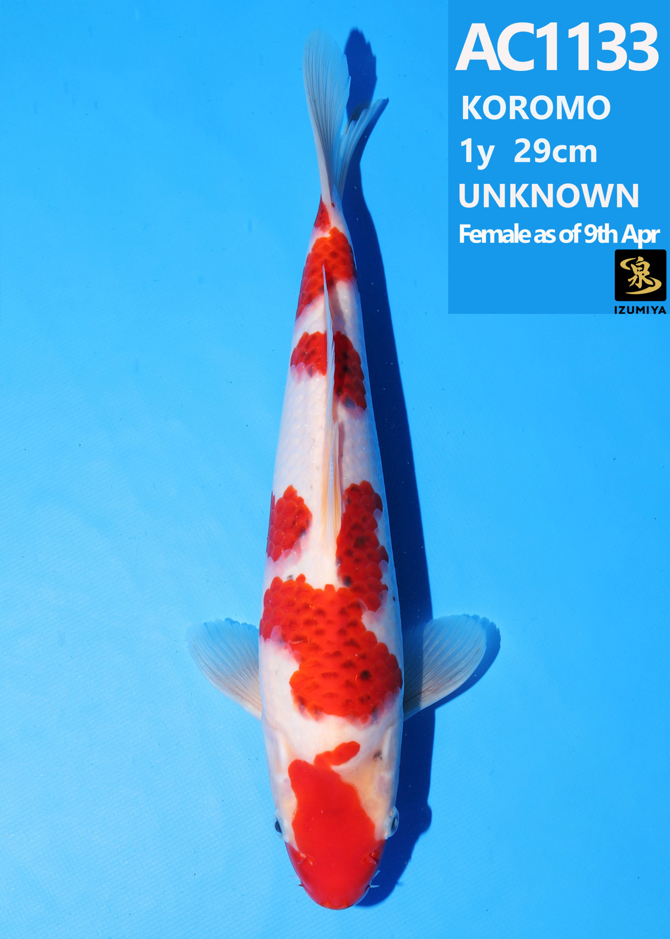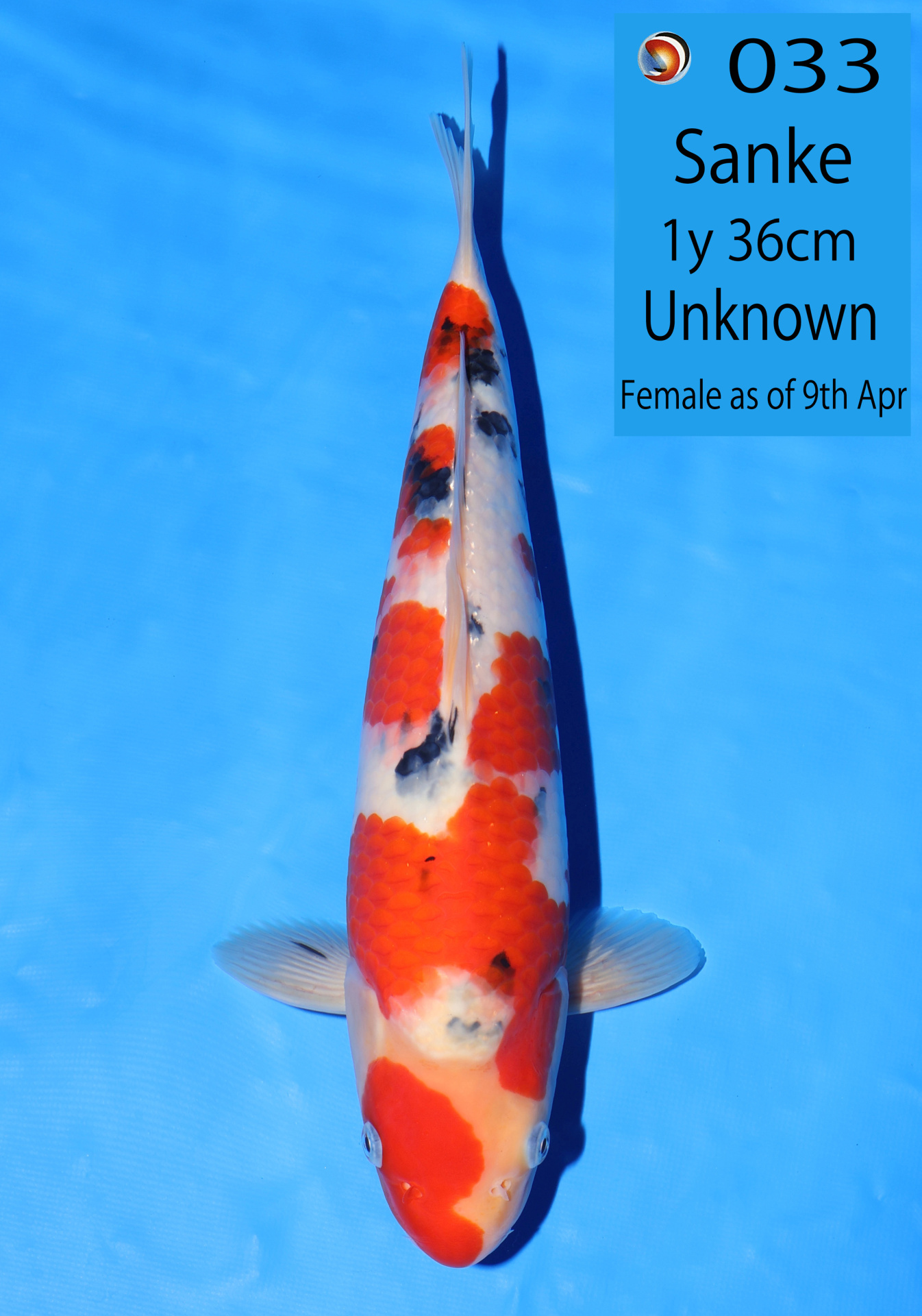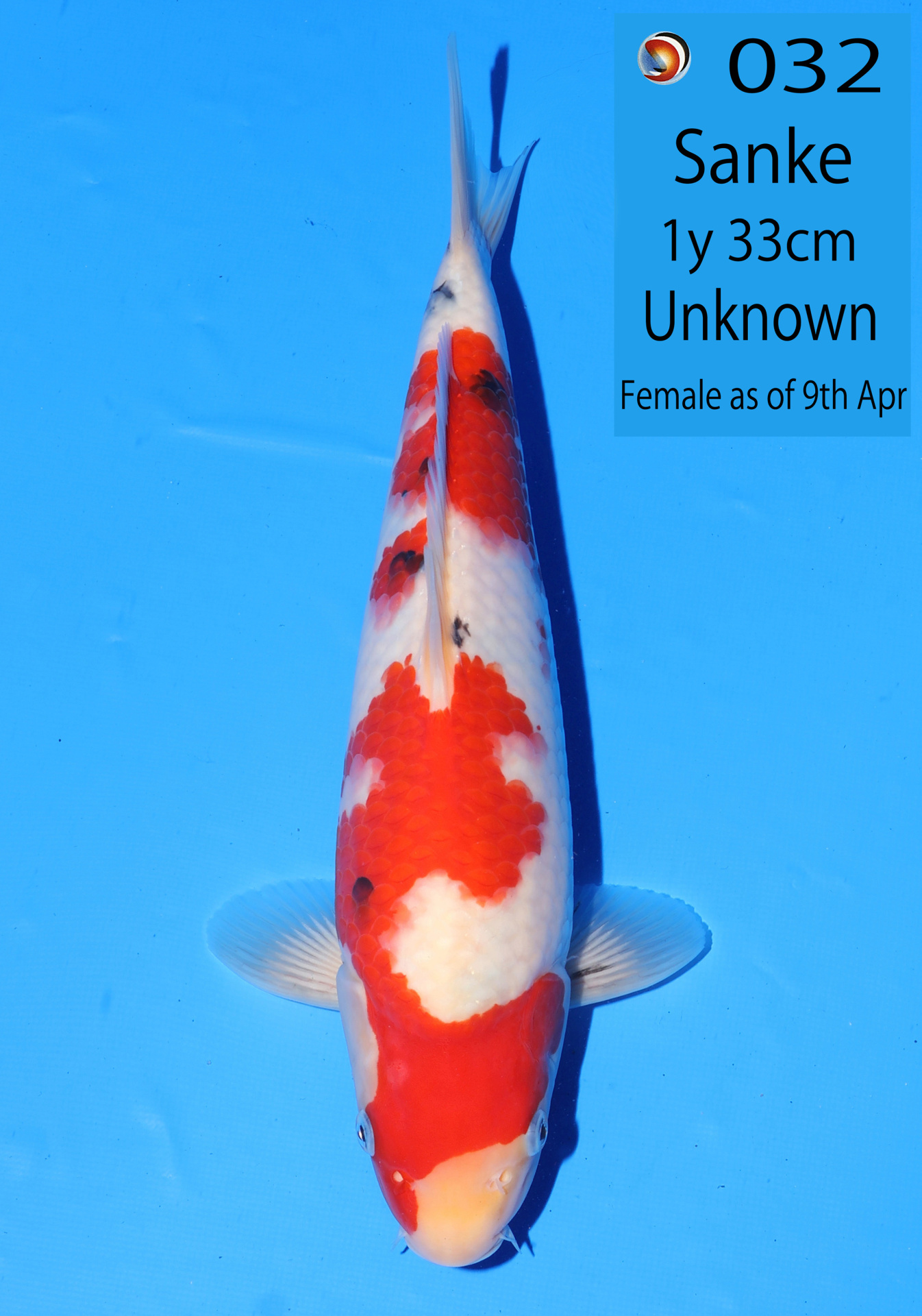 Ooya koi farm 1y 33cm Tancho Kohaku Bidding